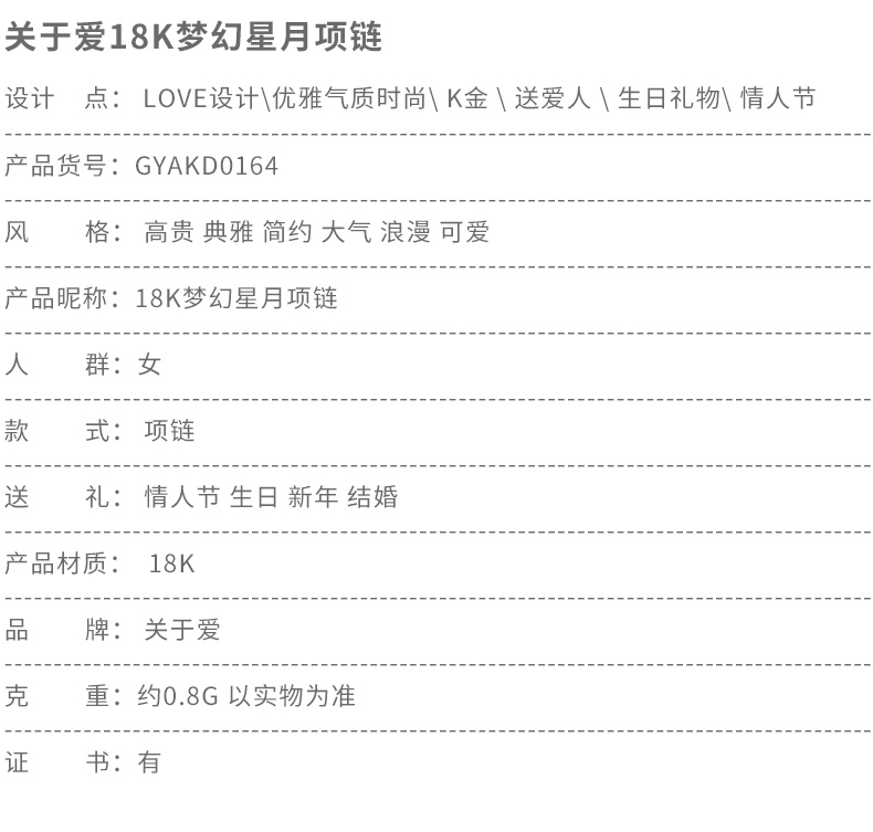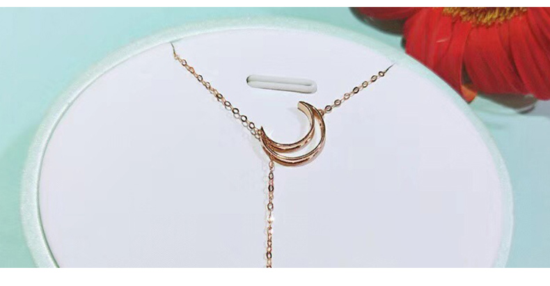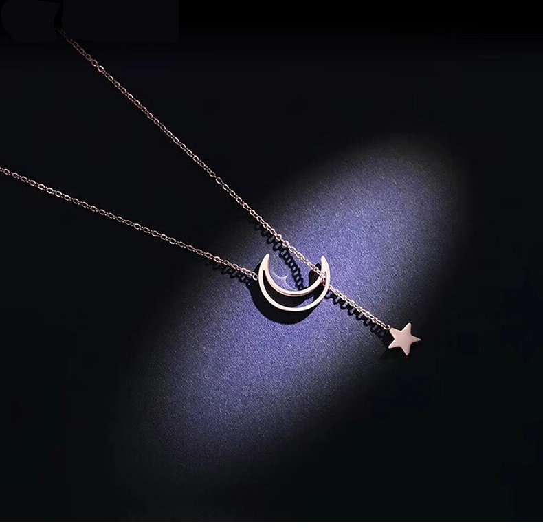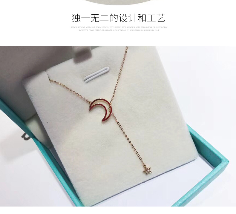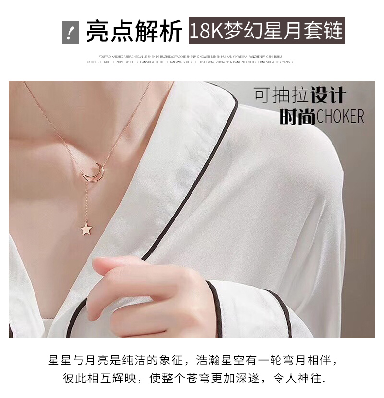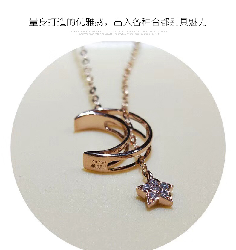 彩金项链女新款18k金梦幻星月吊坠玫瑰金K金钻石套链锁骨链饰品