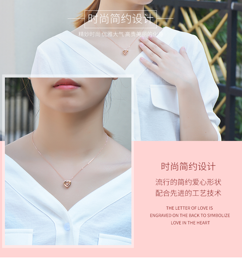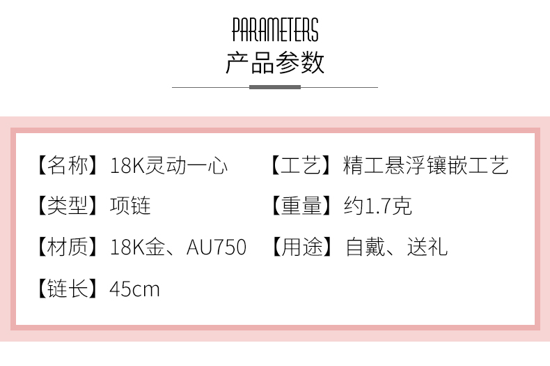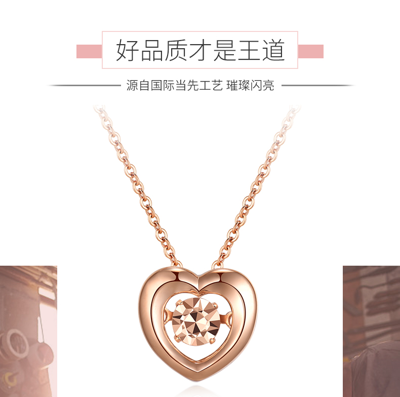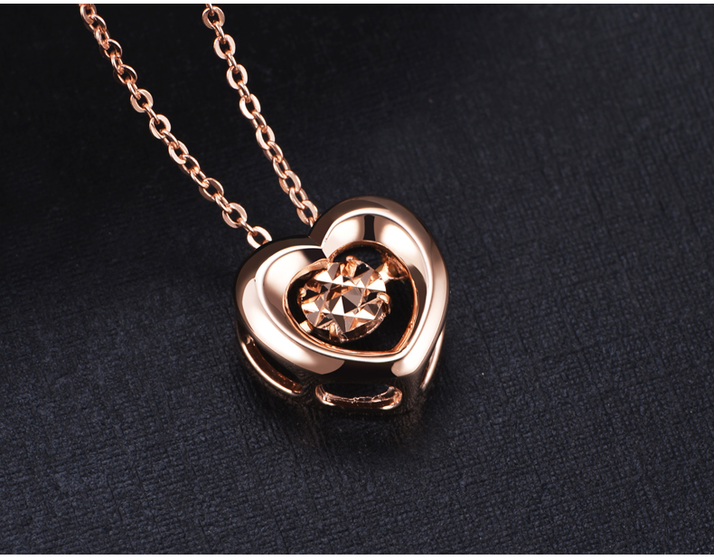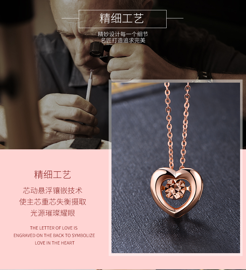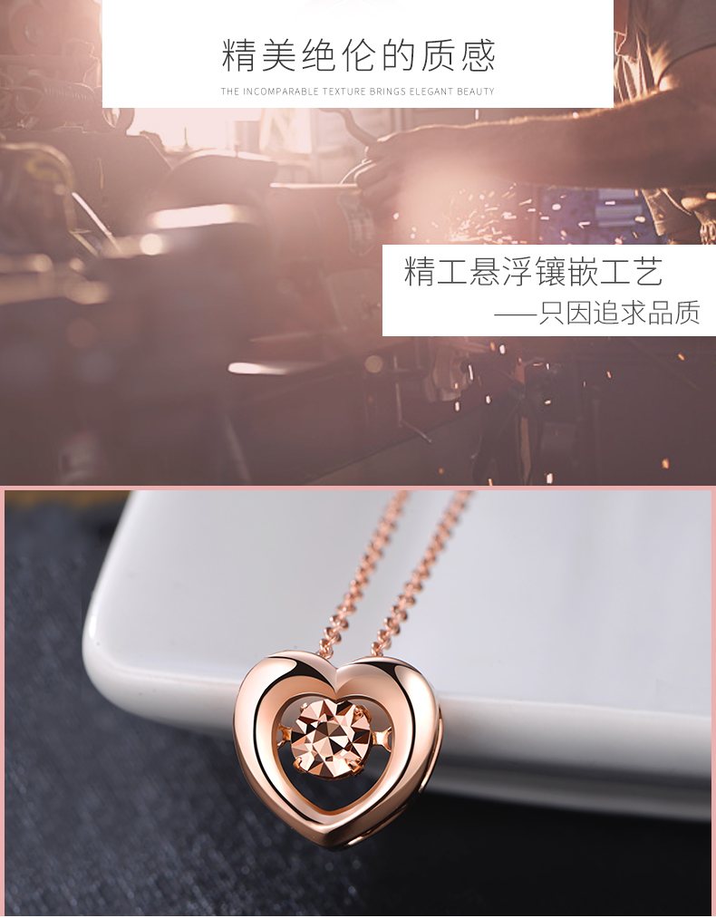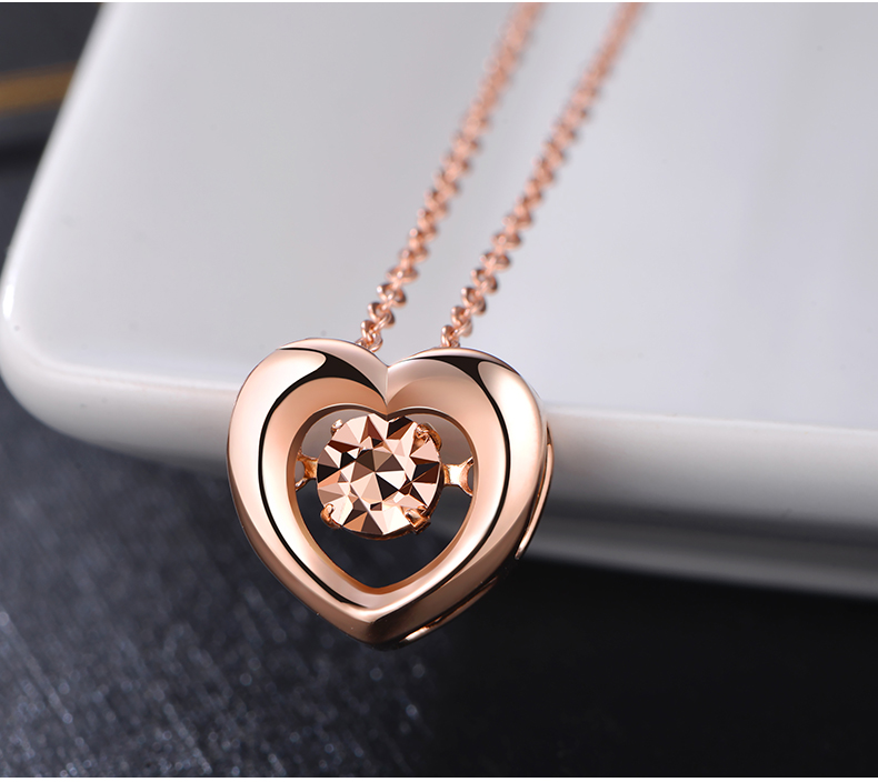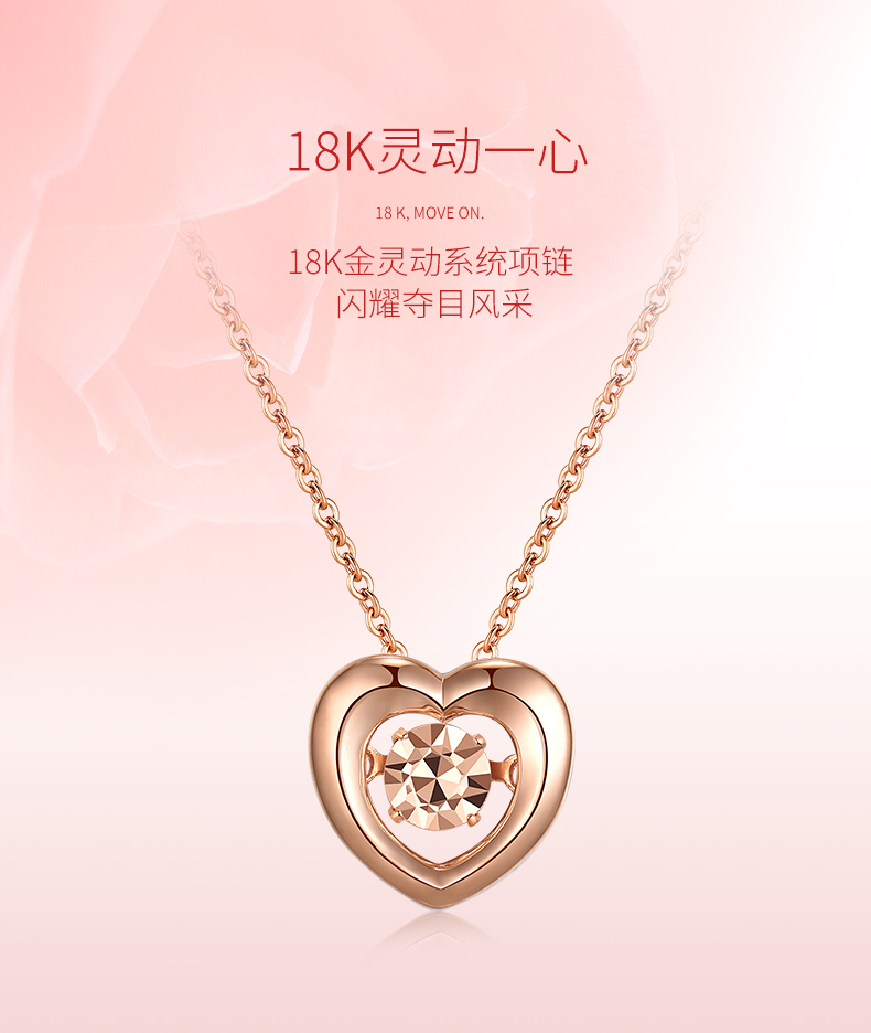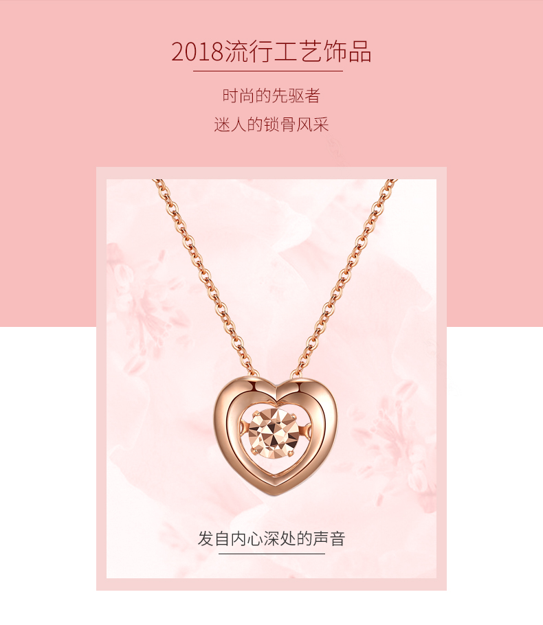 18K金项链女款彩金灵动心形吊坠au750套链玫瑰金锁骨链细送女朋友