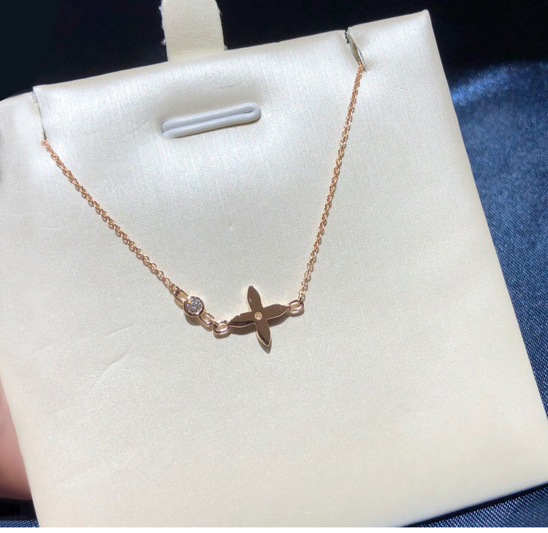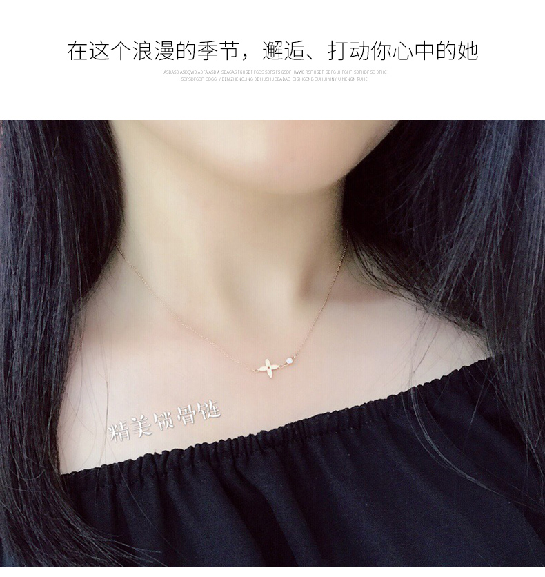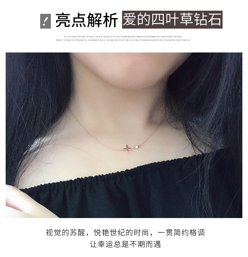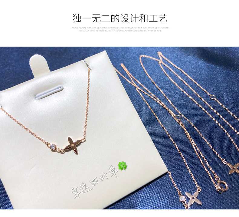 18K金项链玫瑰金小四叶草钻石套链K金吊坠彩金项链女款锁骨链细链