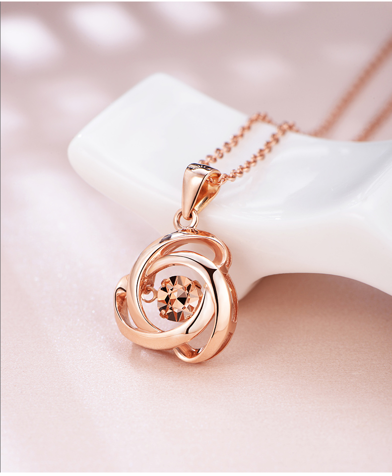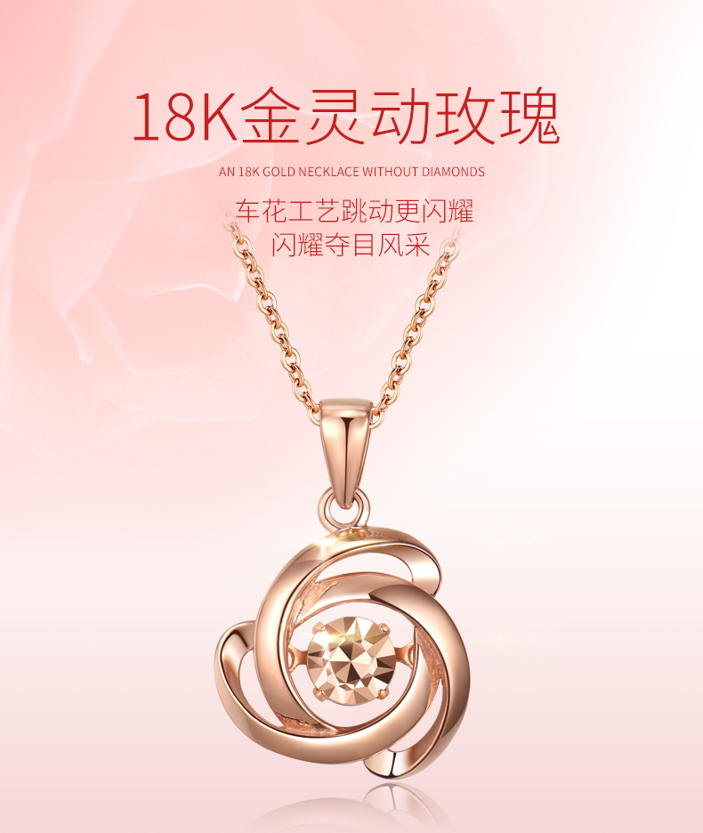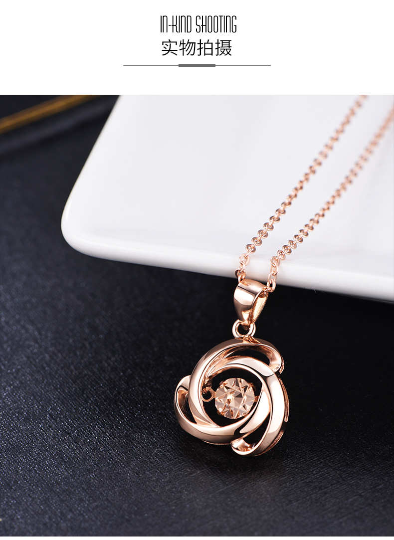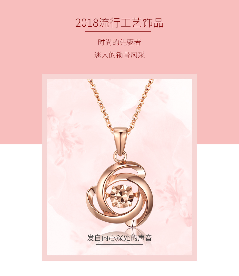 18K金项链女灵动玫瑰花吊坠彩金项链玫瑰金色跳动锁骨链细送女友