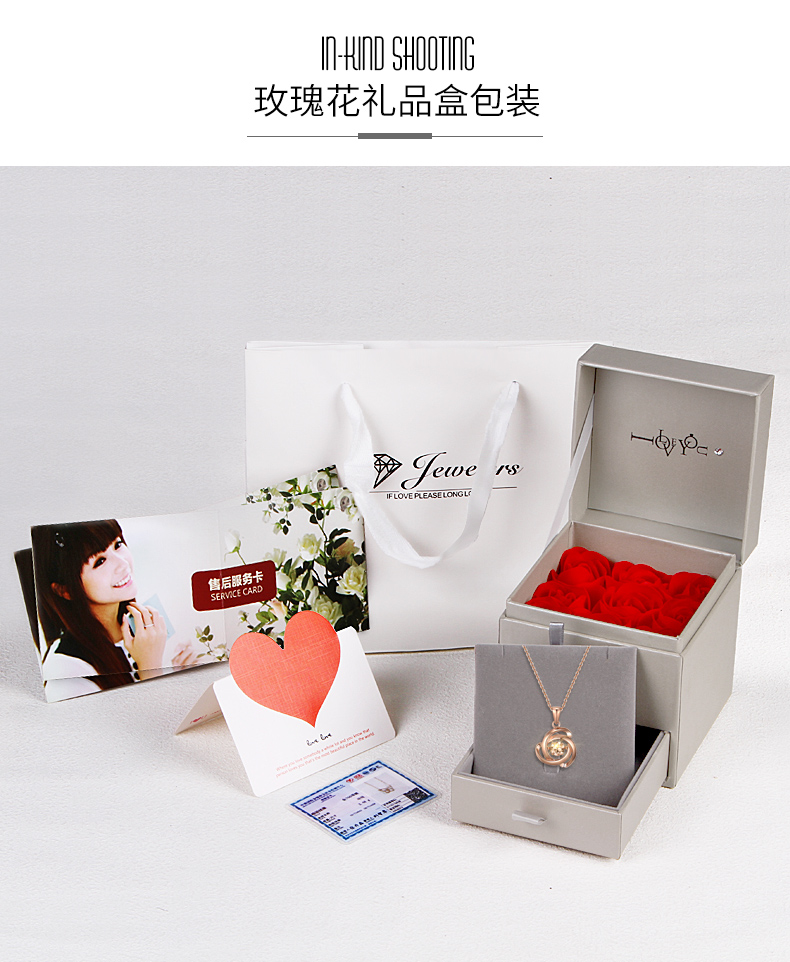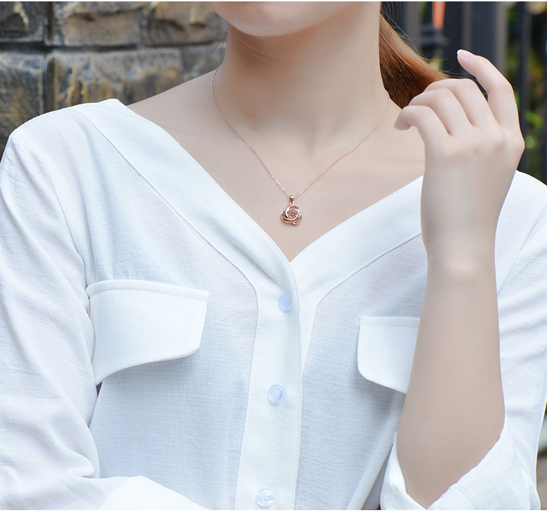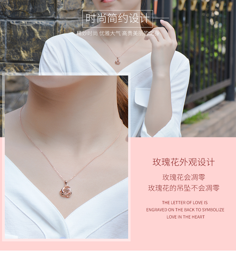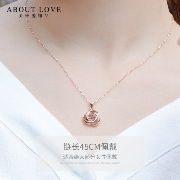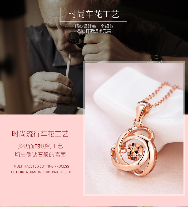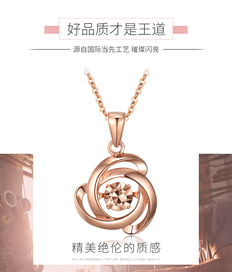 18K金项链女灵动玫瑰花吊坠彩金项链玫瑰金色跳动锁骨链细送女友