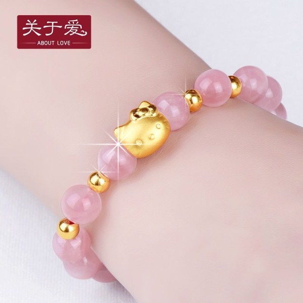 关于爱粉水晶手链粉晶手串饰品女 黄金3D猫 女 时尚手串