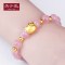 3D硬金999足金黄金可爱猫粉晶手链女手串饰品送女友送闺蜜礼物佳