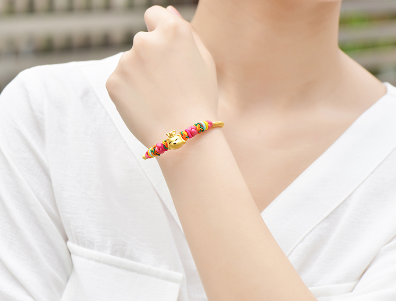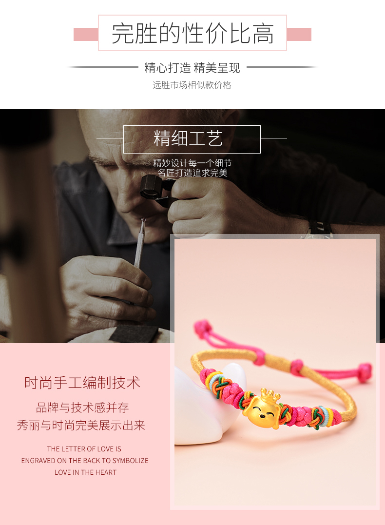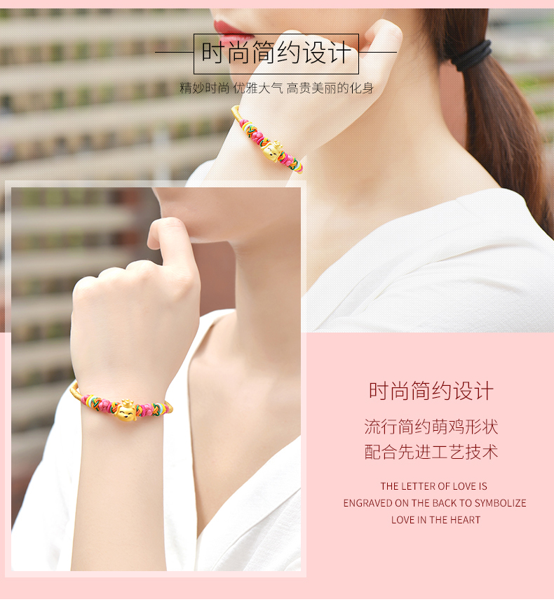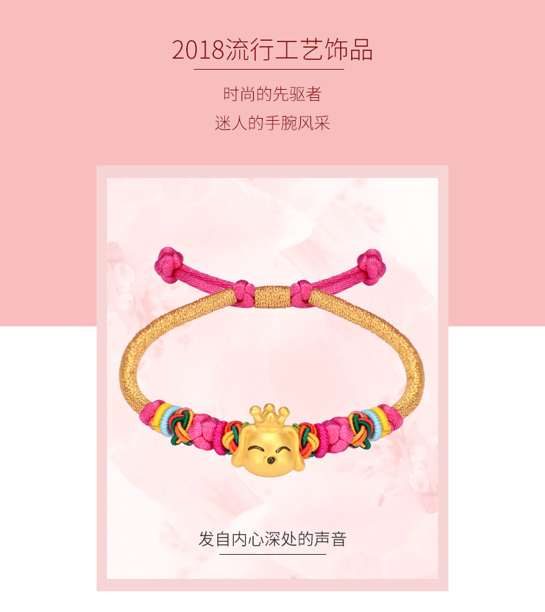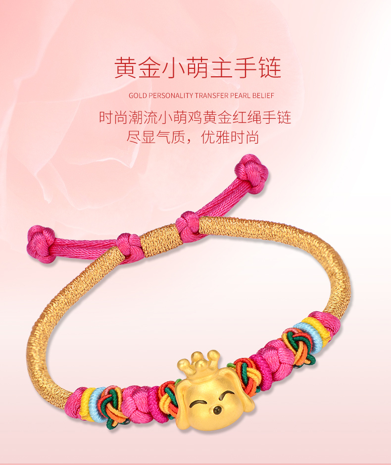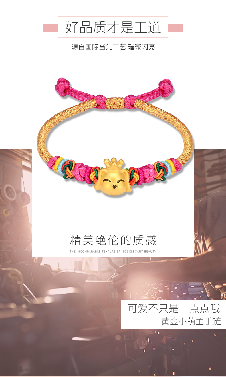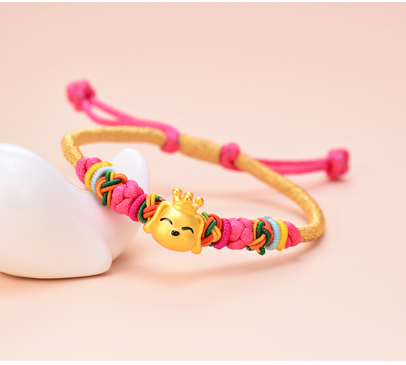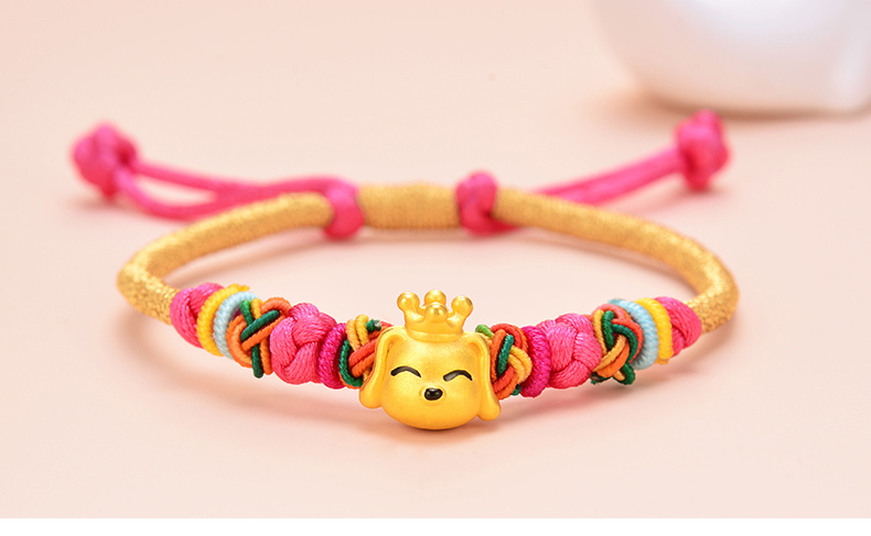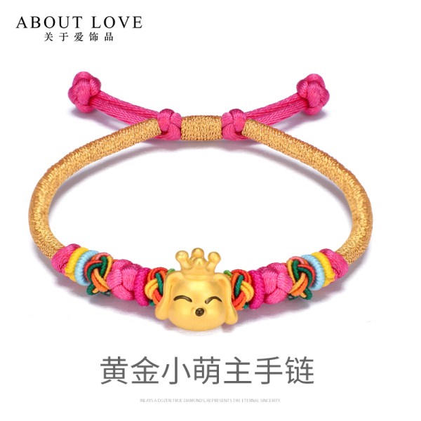 黄金手链女小萌狗狗999足金红绳手饰手工定制本命年红绳节日礼物