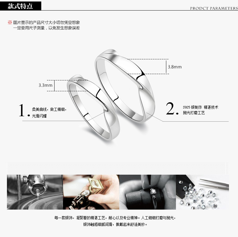 设计点:相守在一起 时尚指环 大气优雅 925银 闪亮 复古 送恋人 送自己 生日礼物 定情信物 情人节礼物 |