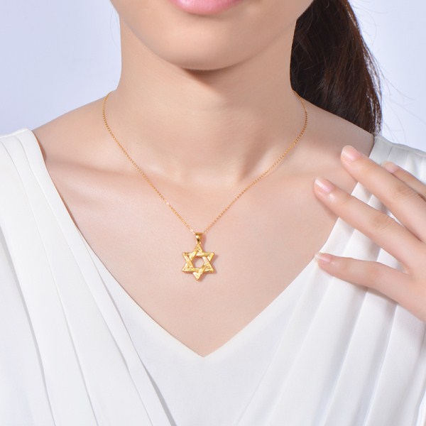 黄金项链女款足金吊坠六芒星六角星吊坠新款K金颈链锁骨链首饰品