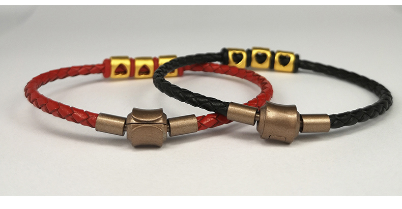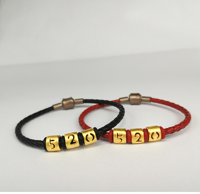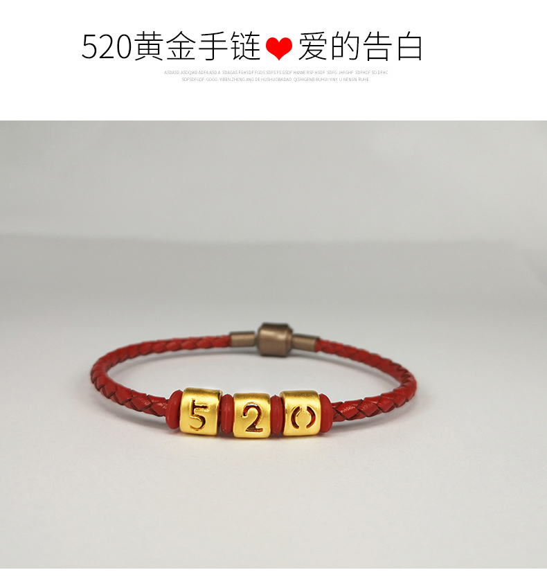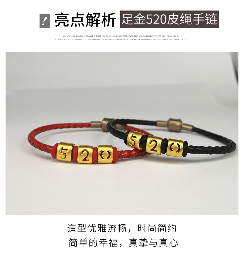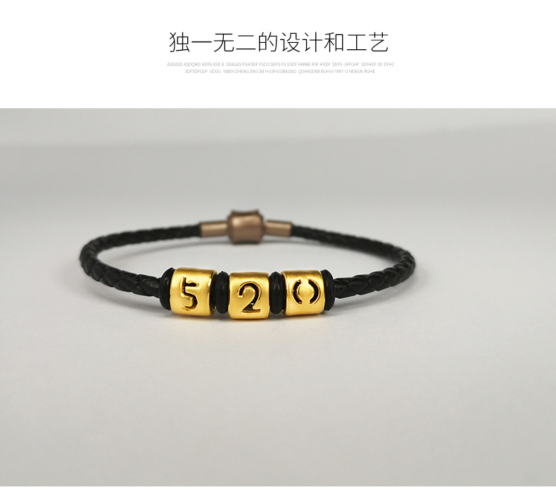 足金转运珠女999黄金手链3d硬金520编织皮绳手串路路通情侣手环