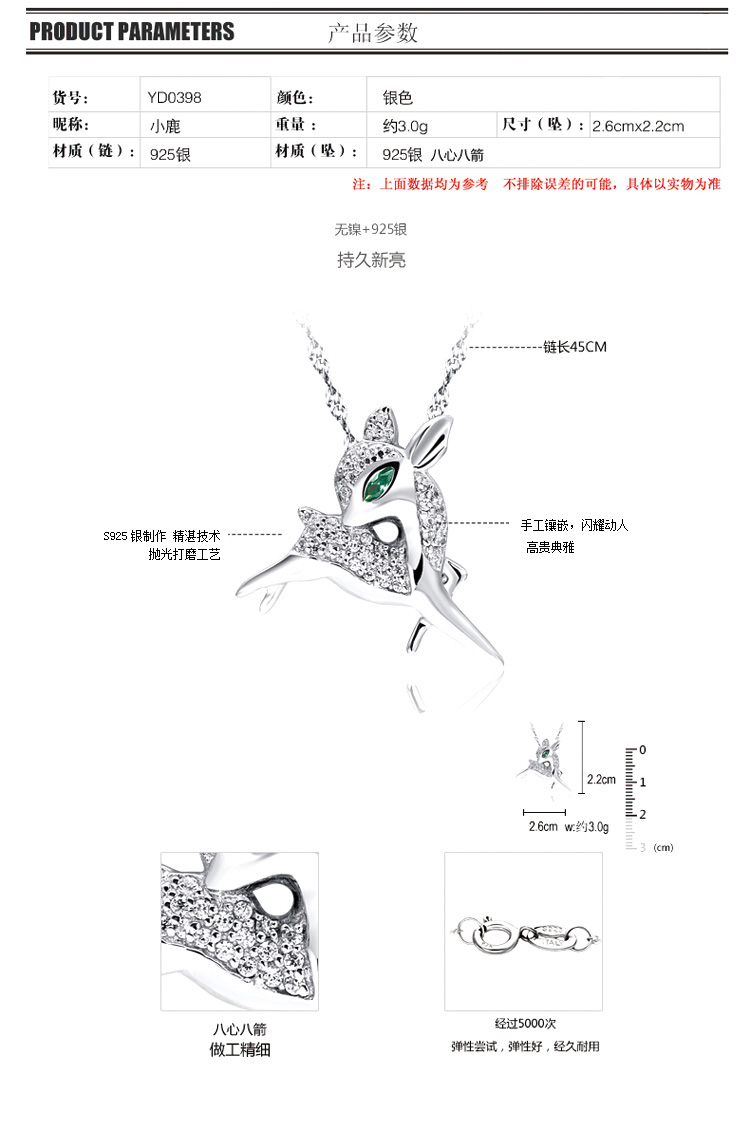 设计点: 小鹿 时尚项链925银 抛光 送恋人 送自己 生日礼物 表白礼物 情人节礼物 |