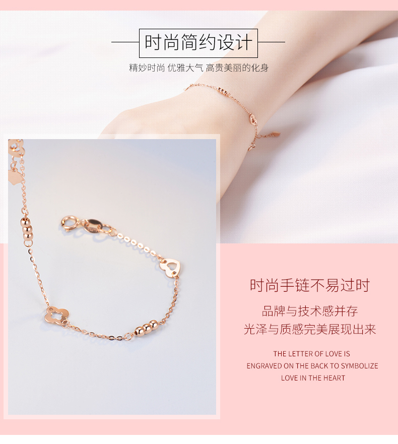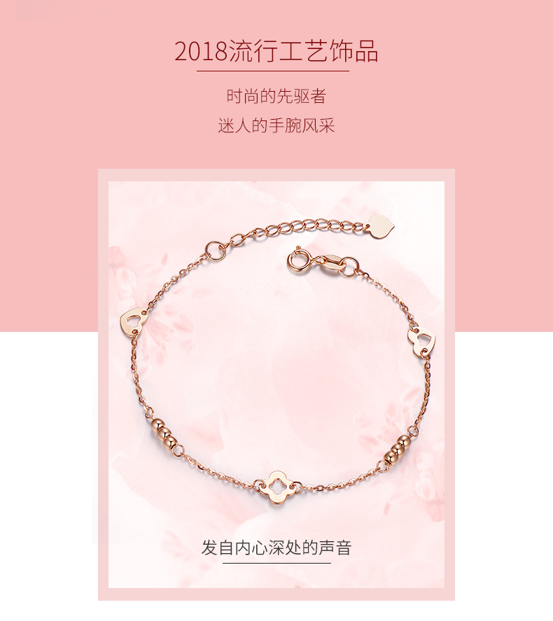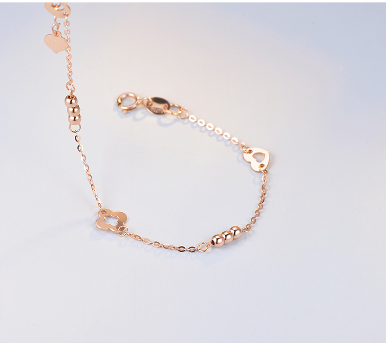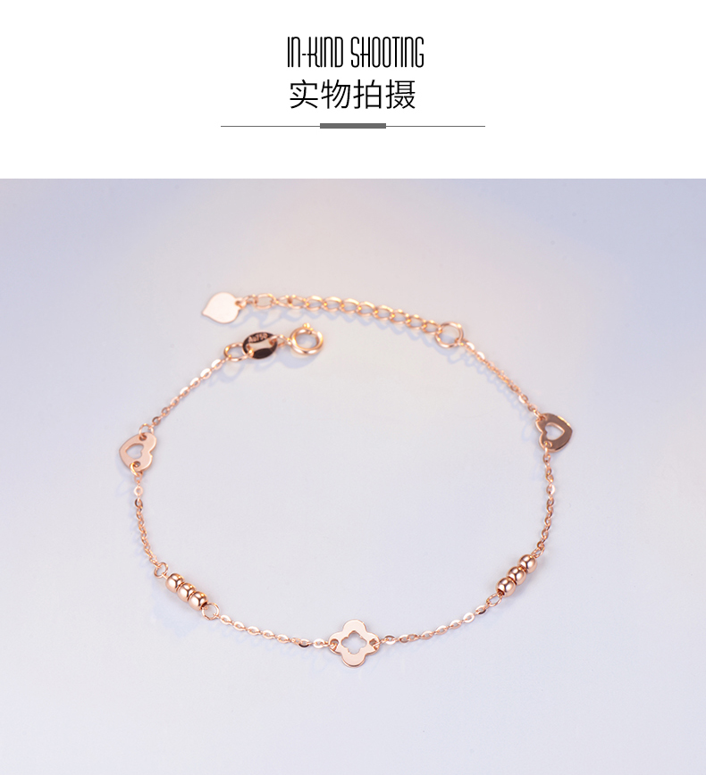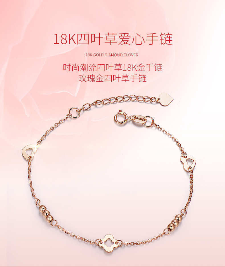 彩金手链女款四叶草18K金手链玫瑰金爱心链子转运珠首饰个性时尚