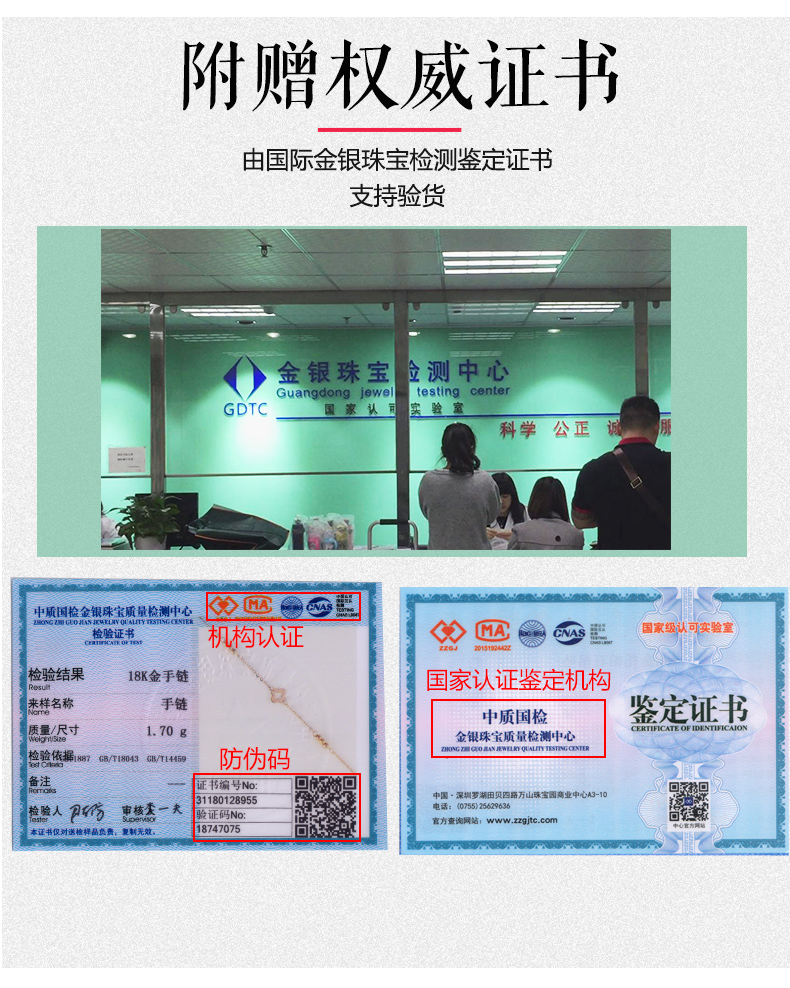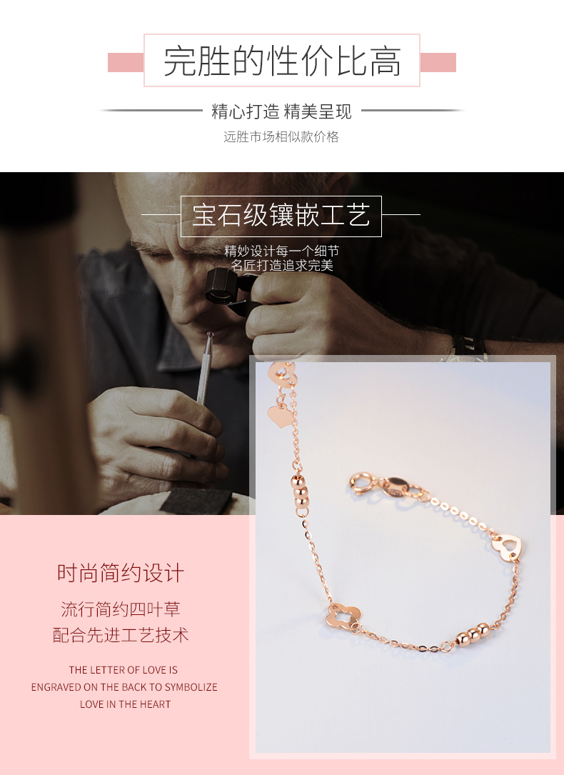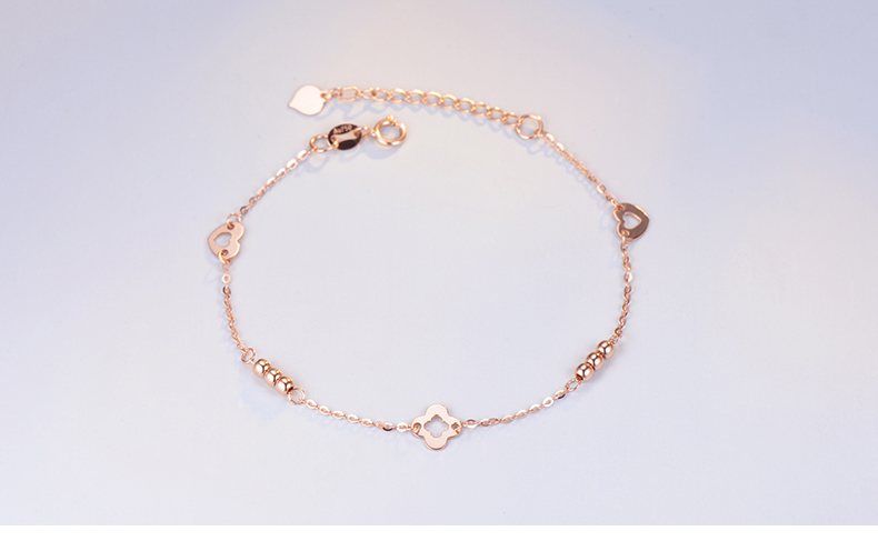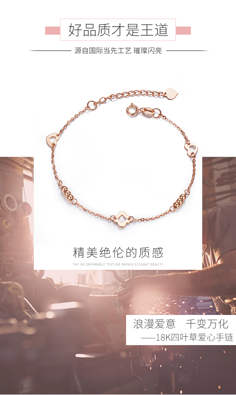 彩金手链女款四叶草18K金手链玫瑰金爱心链子转运珠首饰个性时尚
