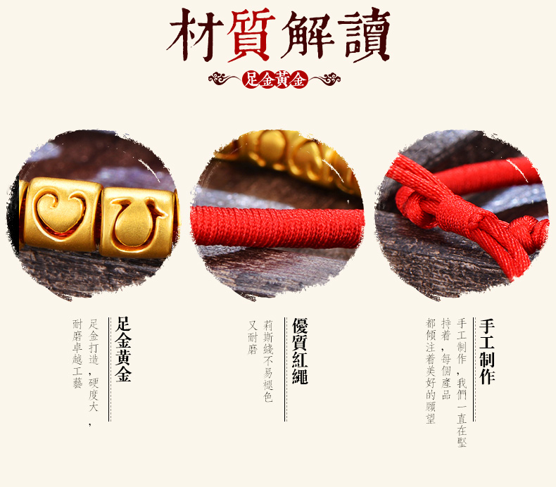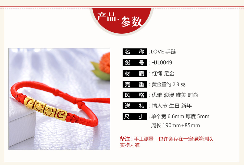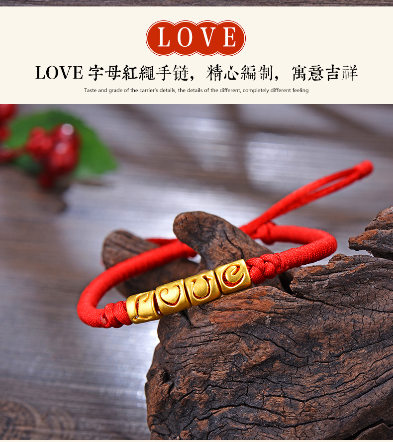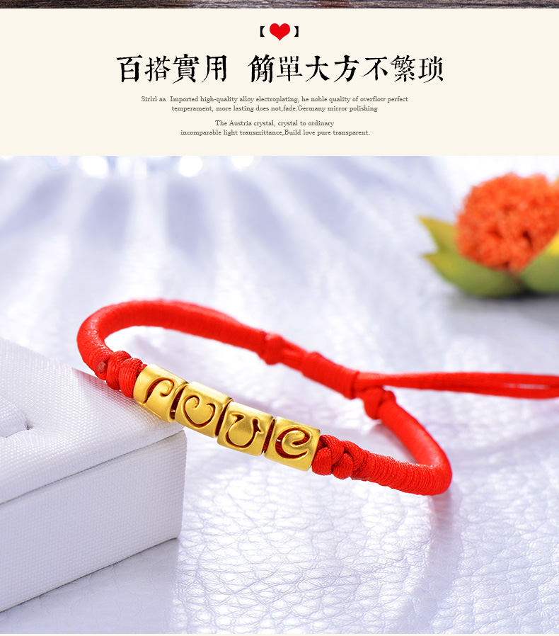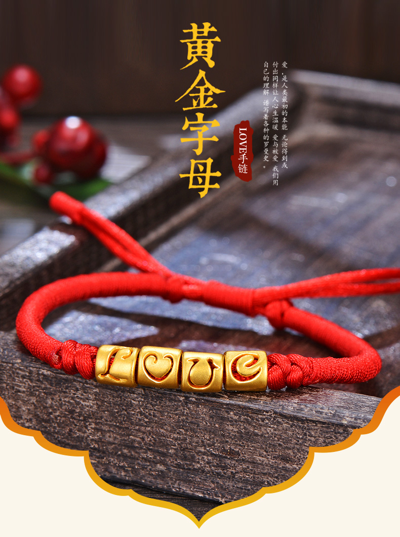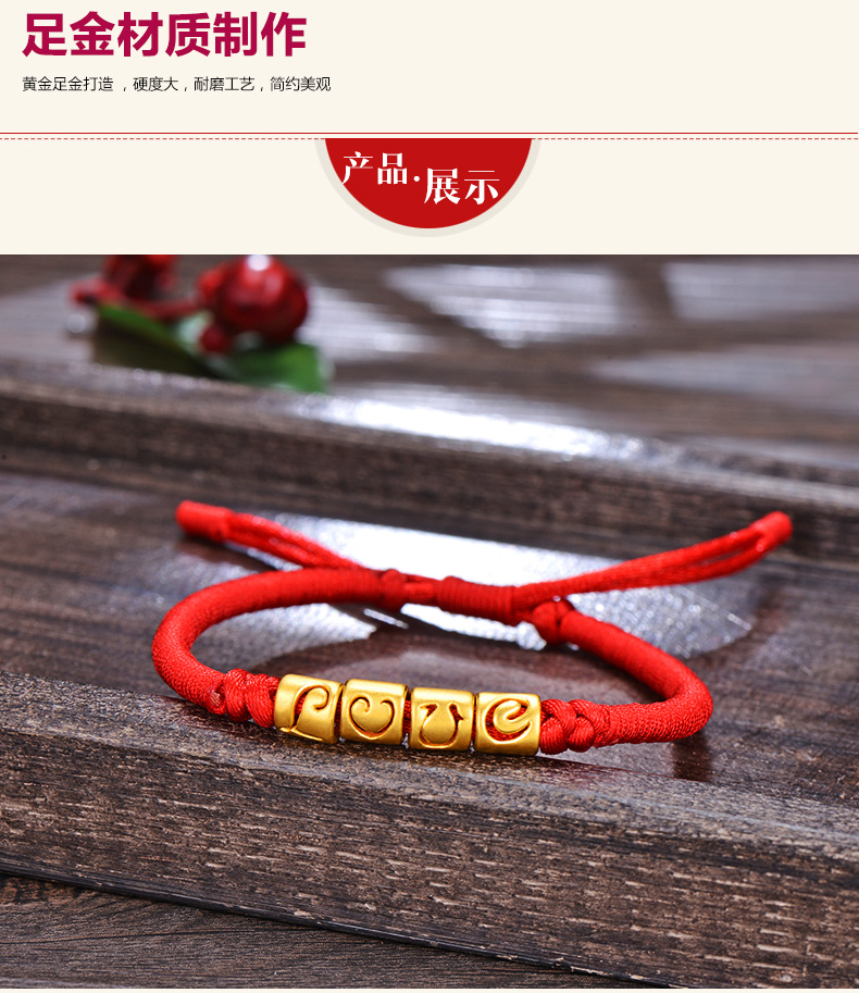 设计点:红绳足金手链 高贵典雅 足金 送爱人 新年礼物 情人 |