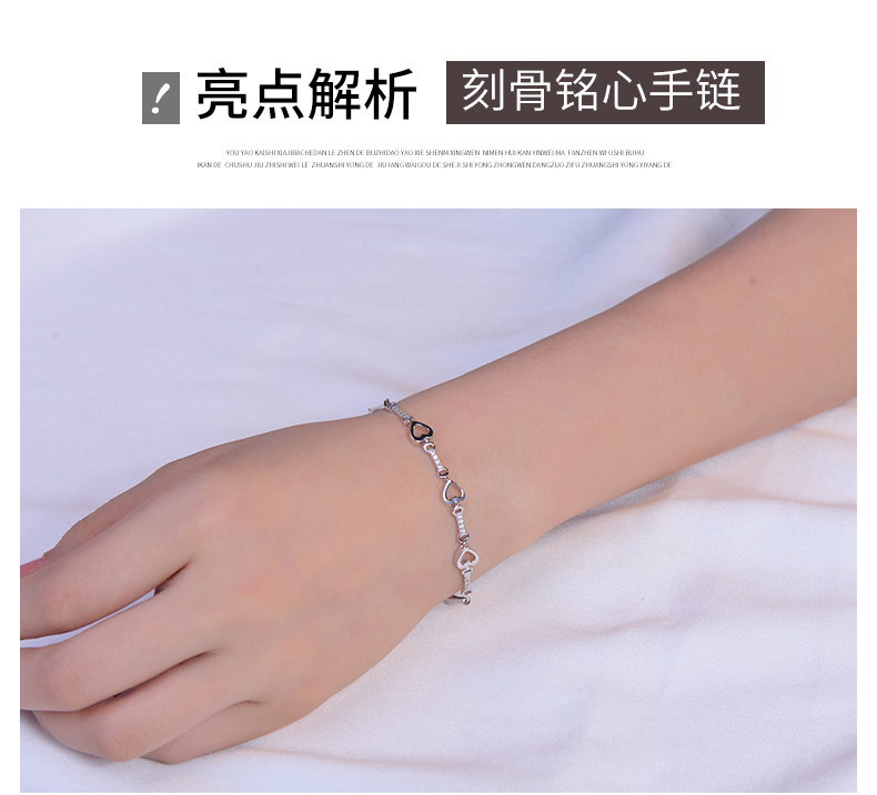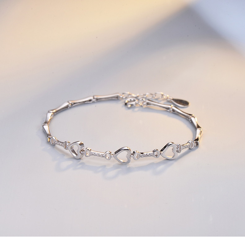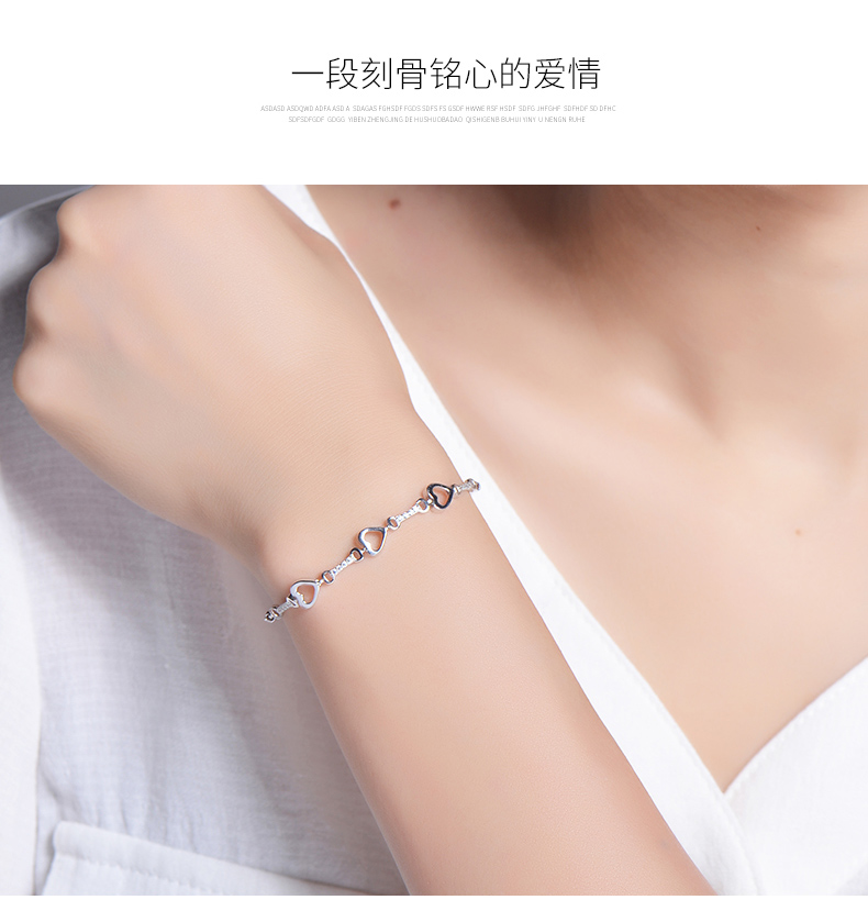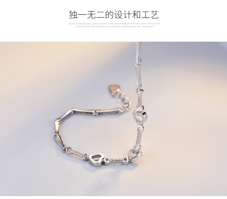 S925银手链女韩版简约学生森系闺蜜爱心形骨头手串手环可调节手饰