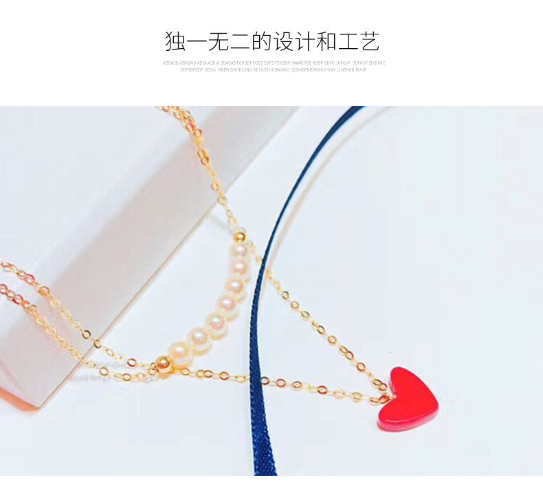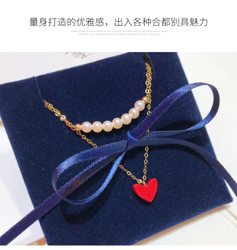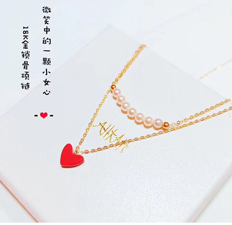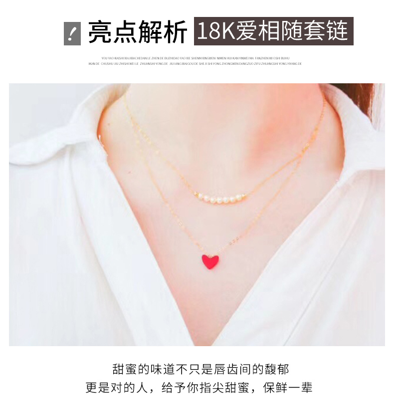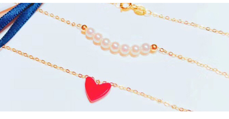 双层项链女锁骨链简约日韩小红心吊坠K金珍珠套链彩金项链女颈饰