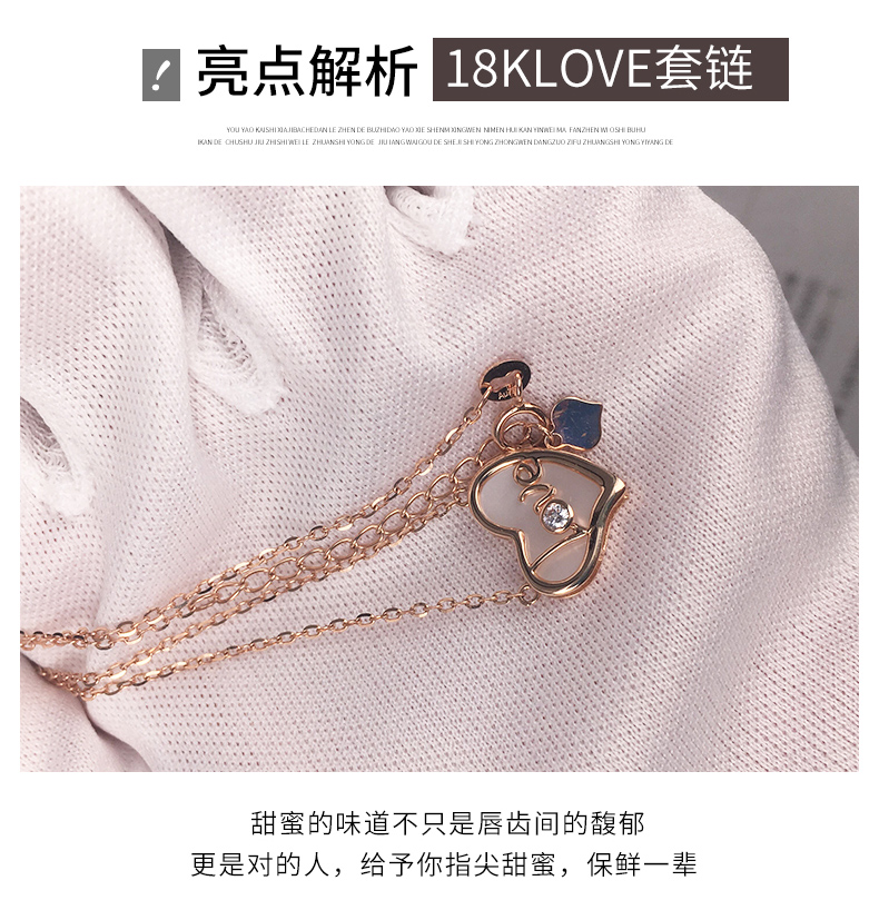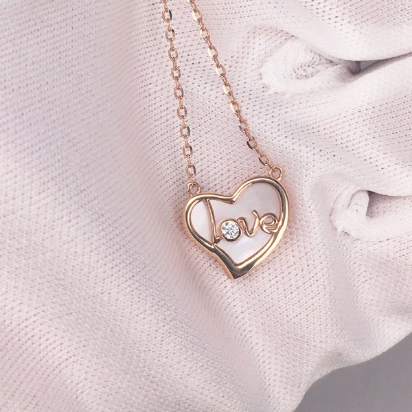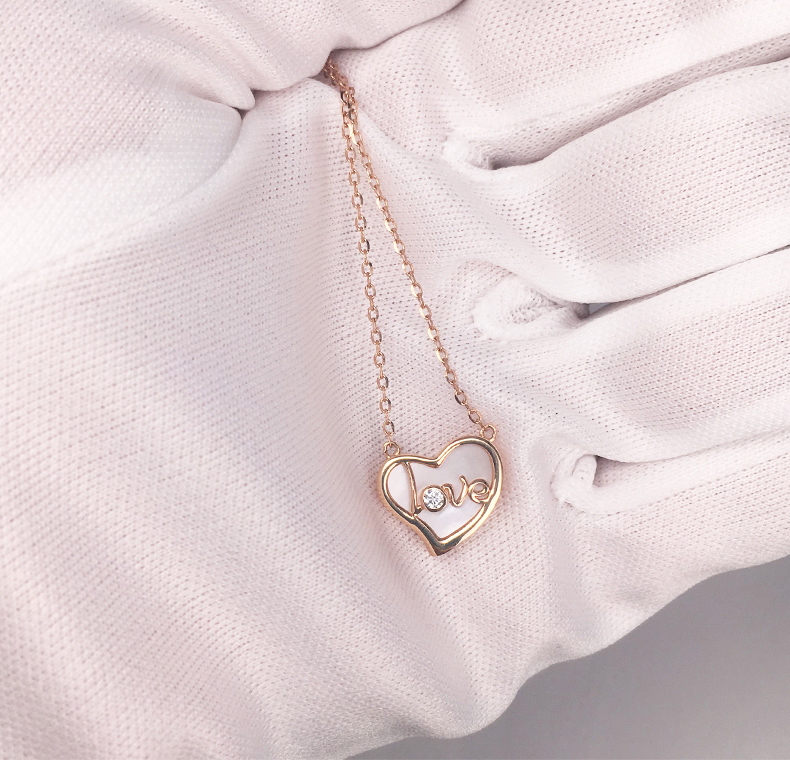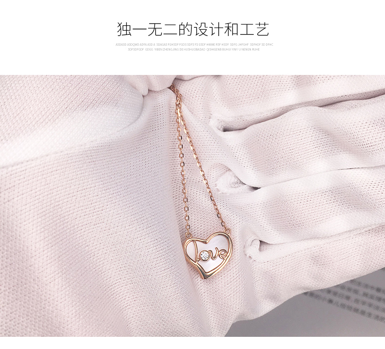 18k玫瑰金项链女款贝母love心形吊坠K金套链细链锁骨链可调节珠宝