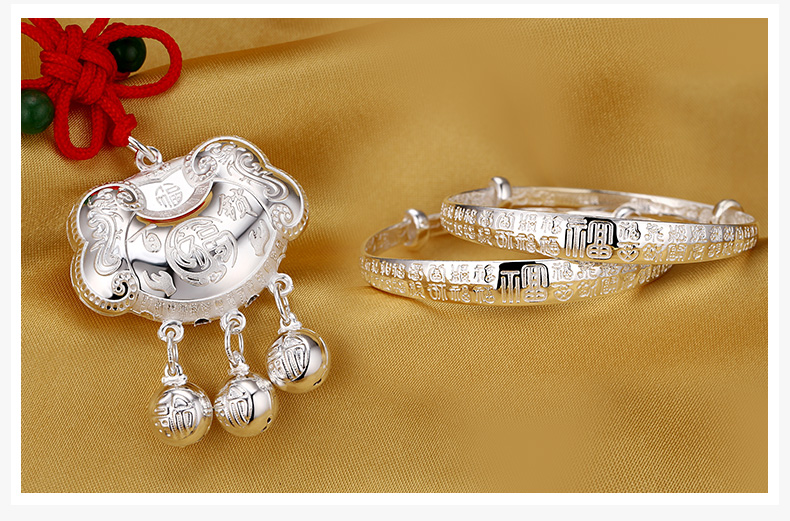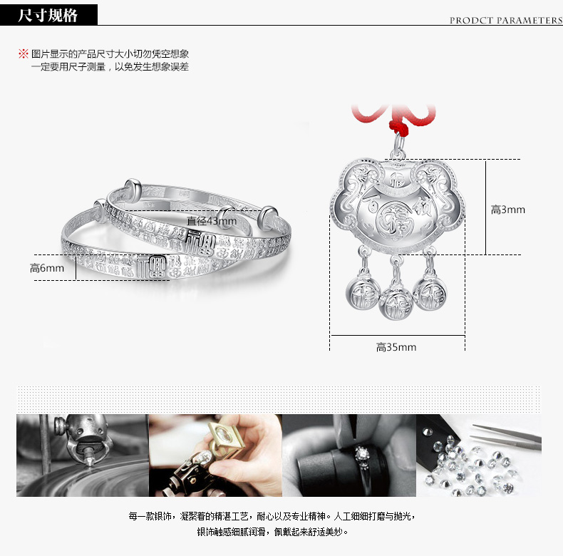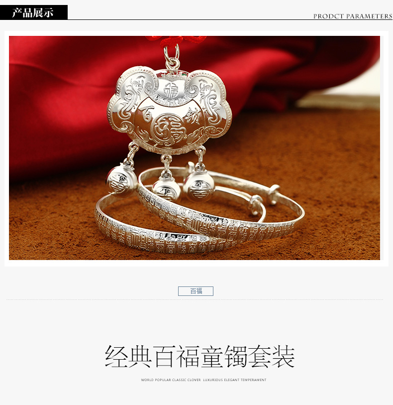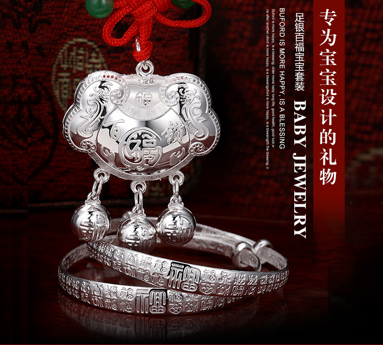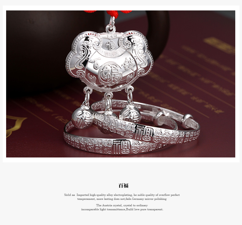 尺寸:百福宝宝手镯直径约44mm 百福锁直径约35mm | 送礼: 六一 生日 新年 |