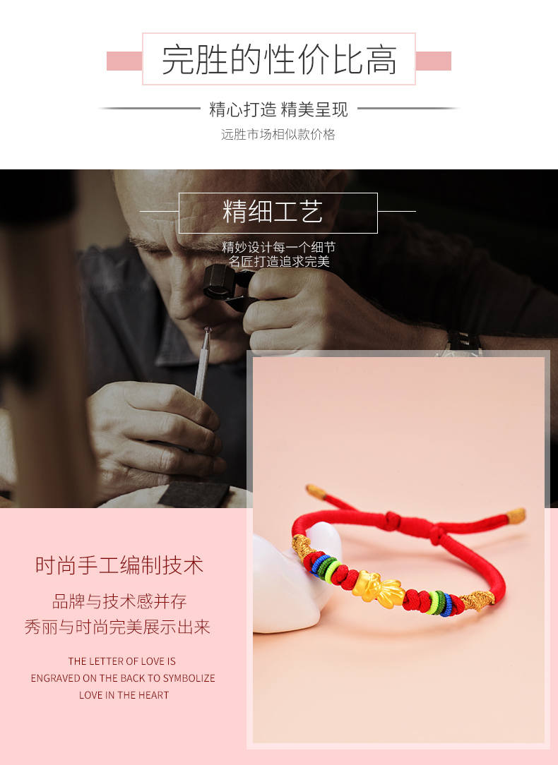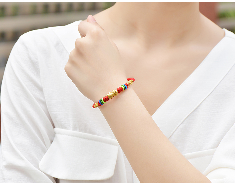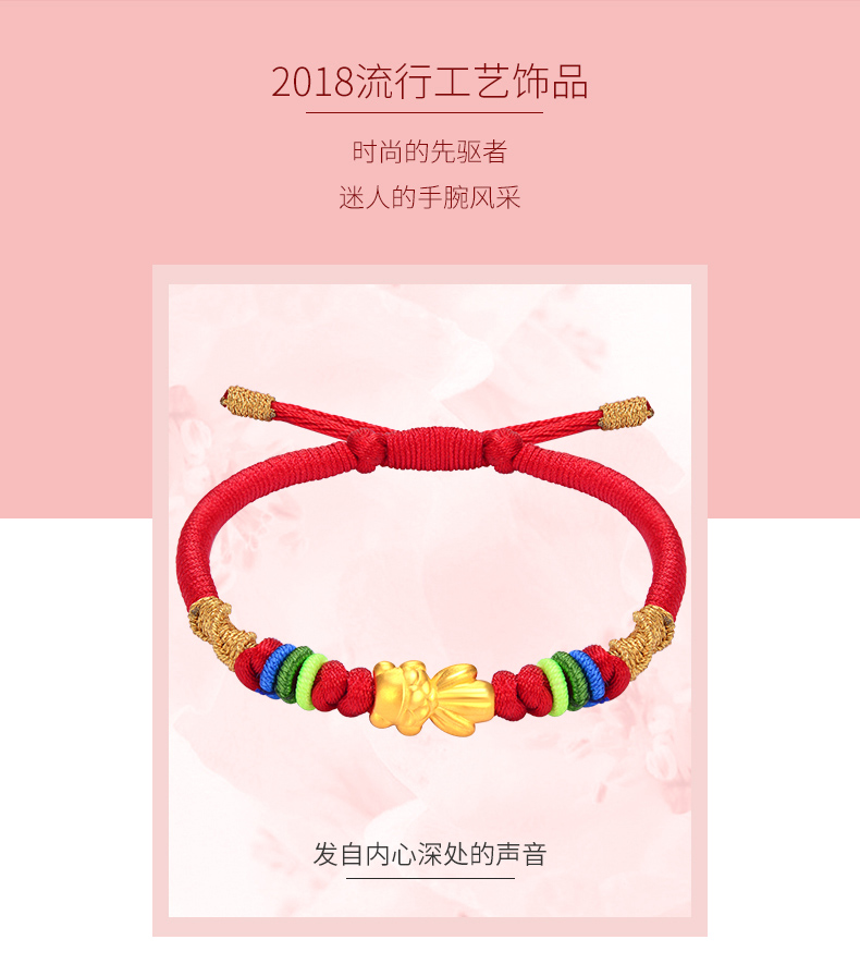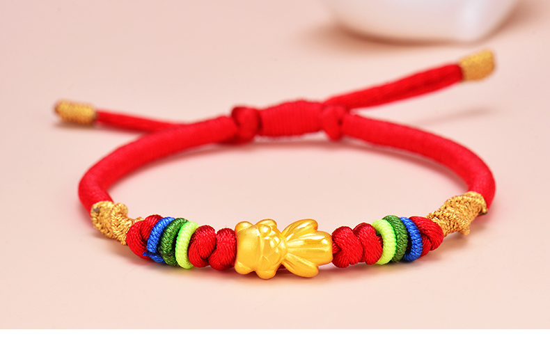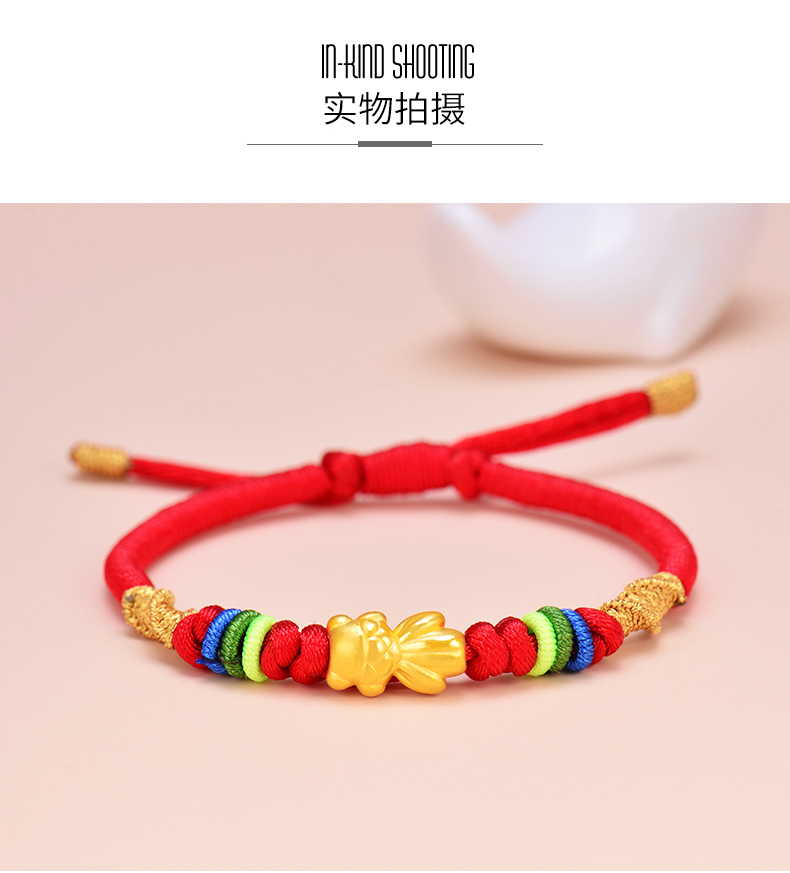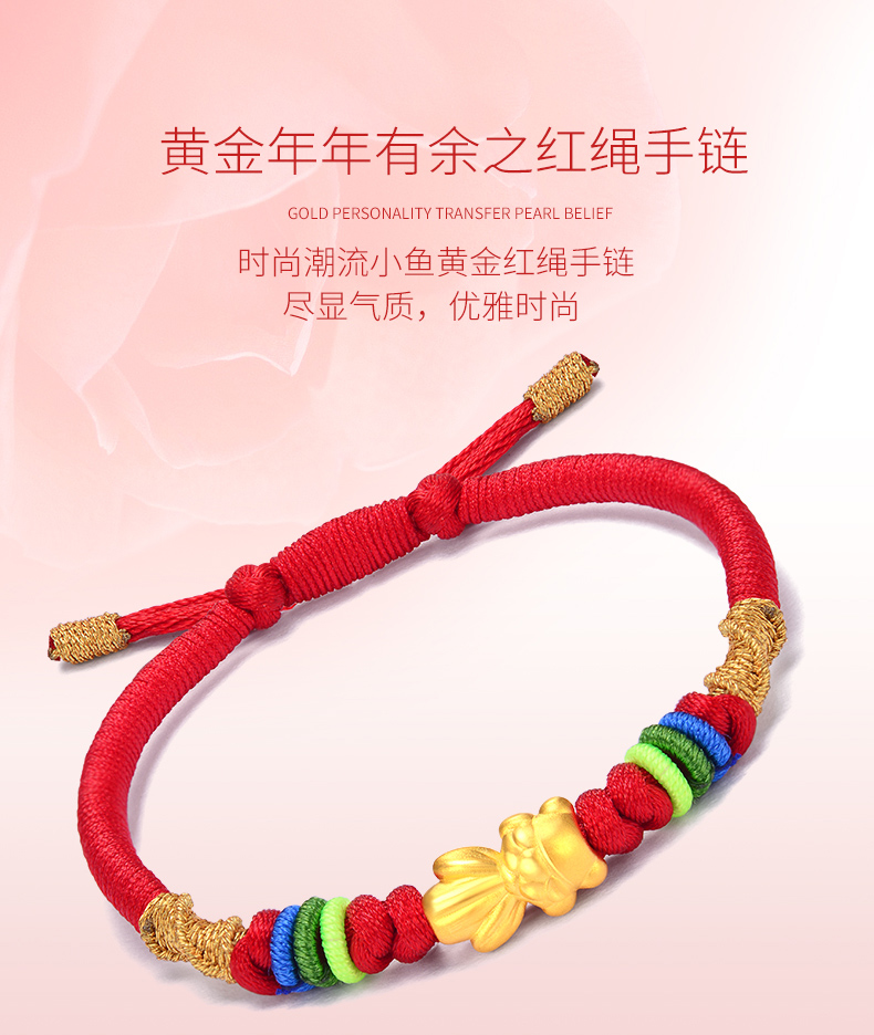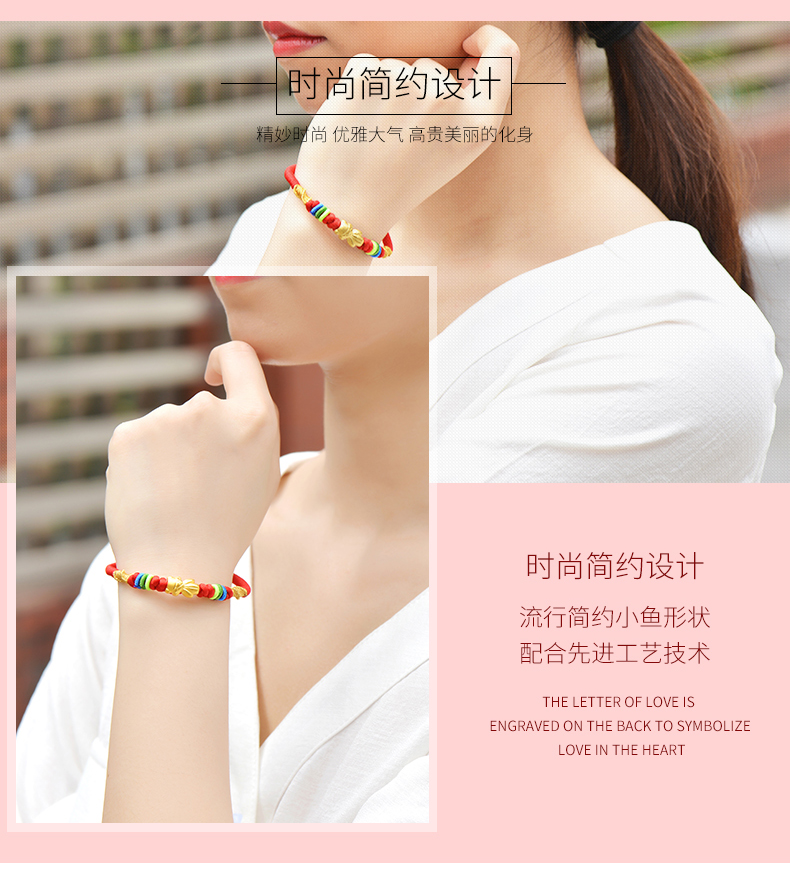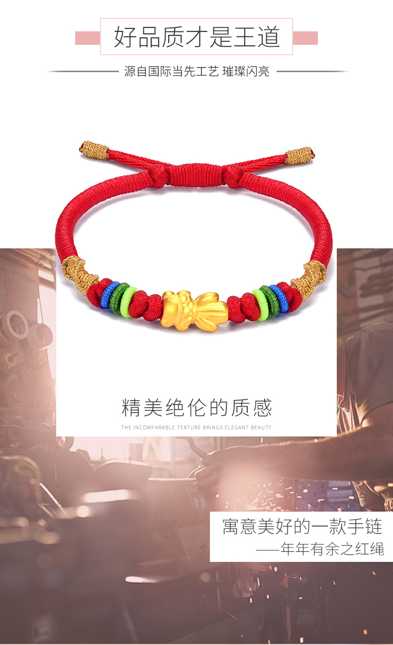 黄金手链女999足金转运珠年年有鱼有余手工编织绳硬金礼物送女友