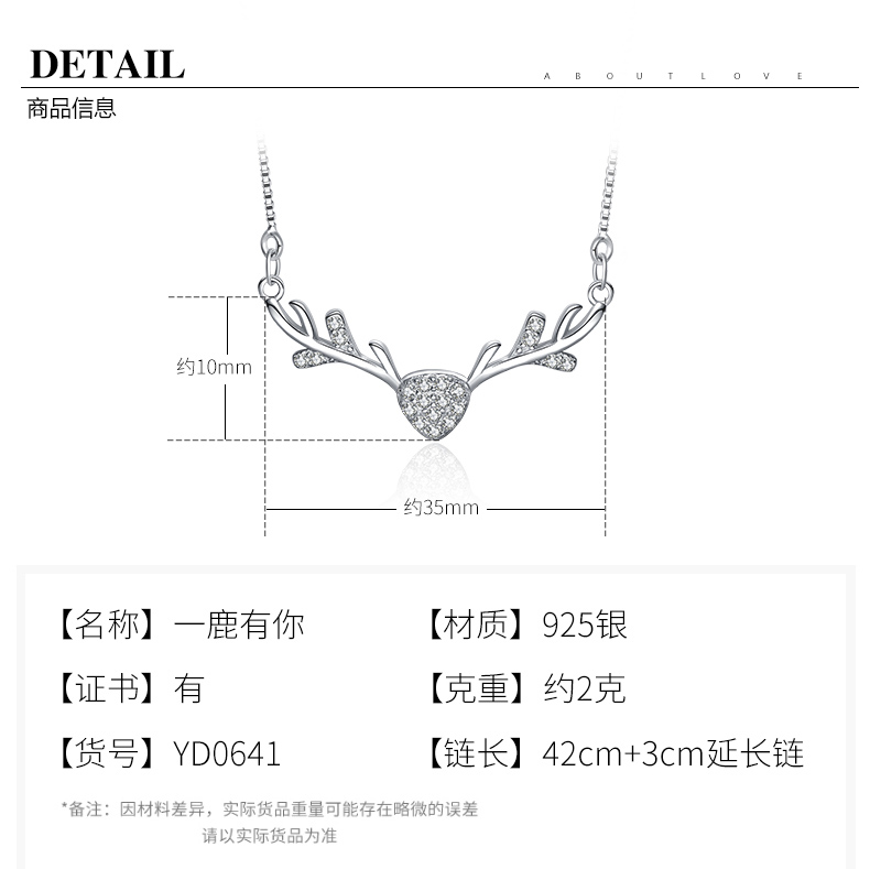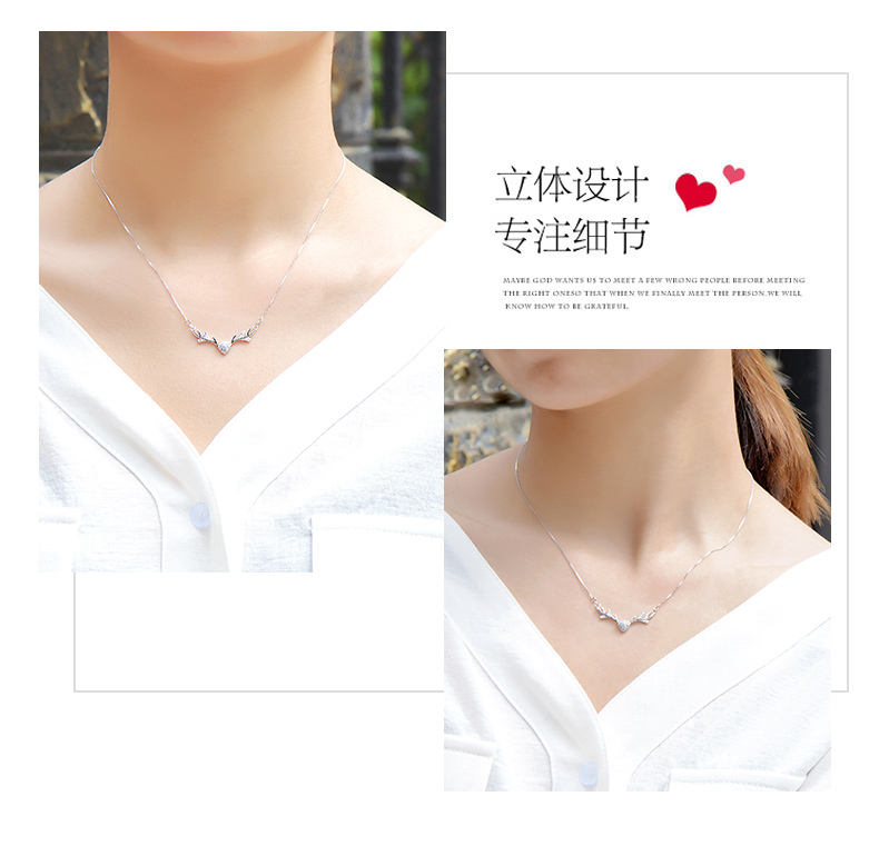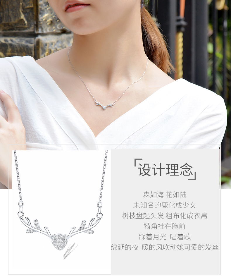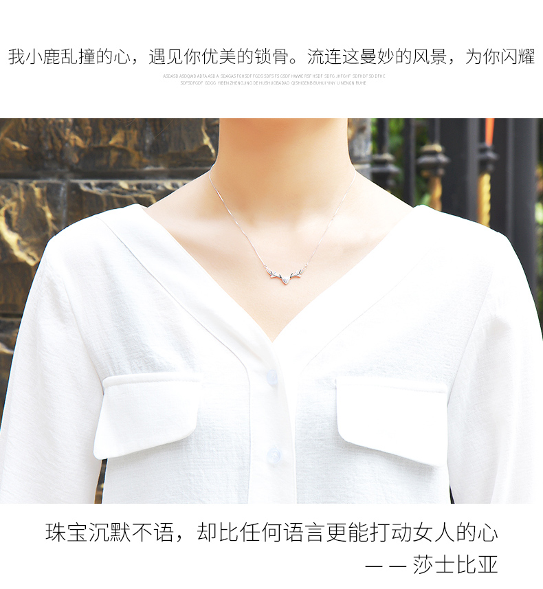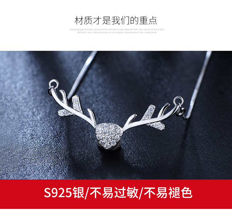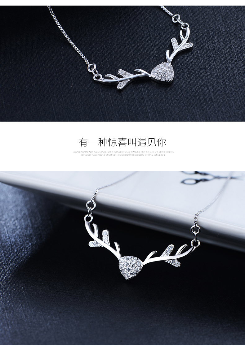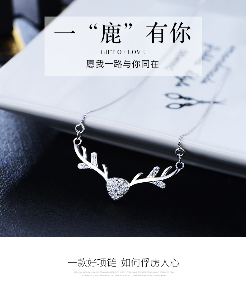 925银项链女麋鹿角锁骨链吊坠学生情侣简约首饰品生日礼物送女友