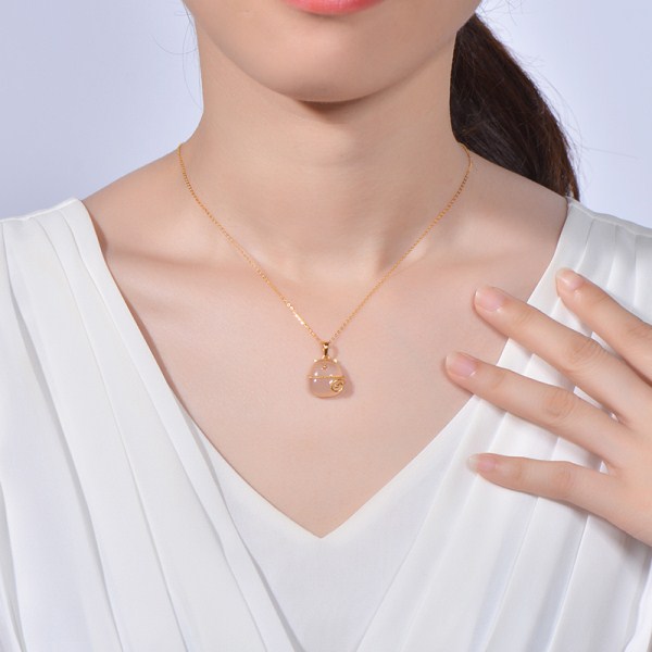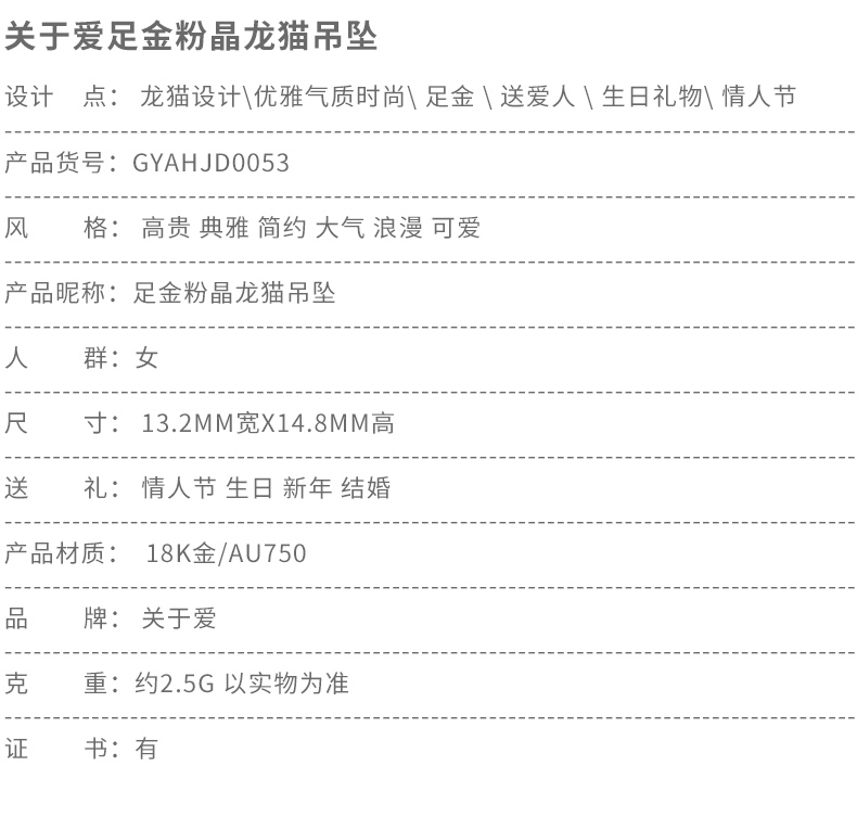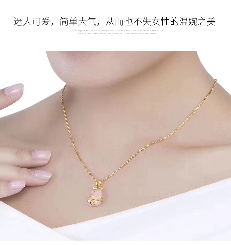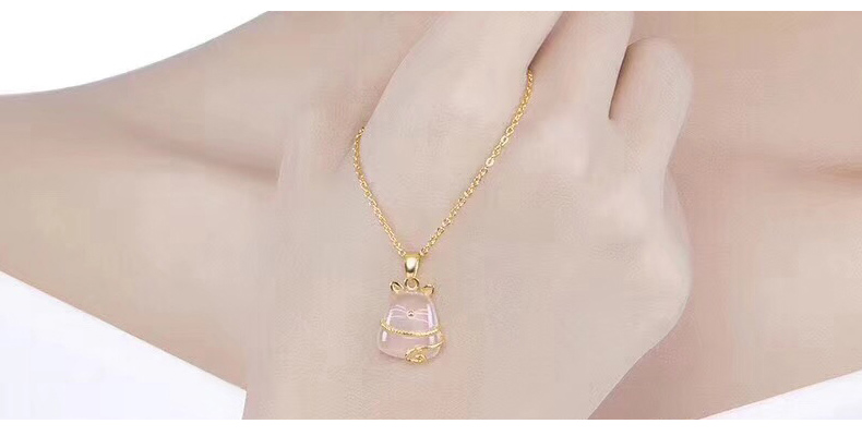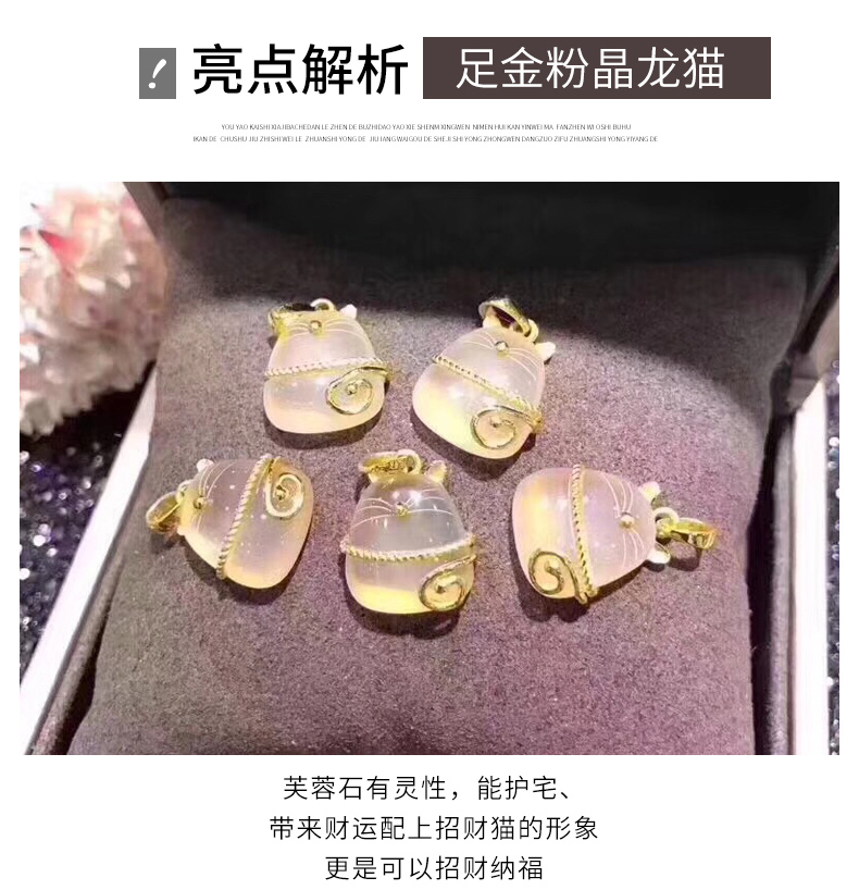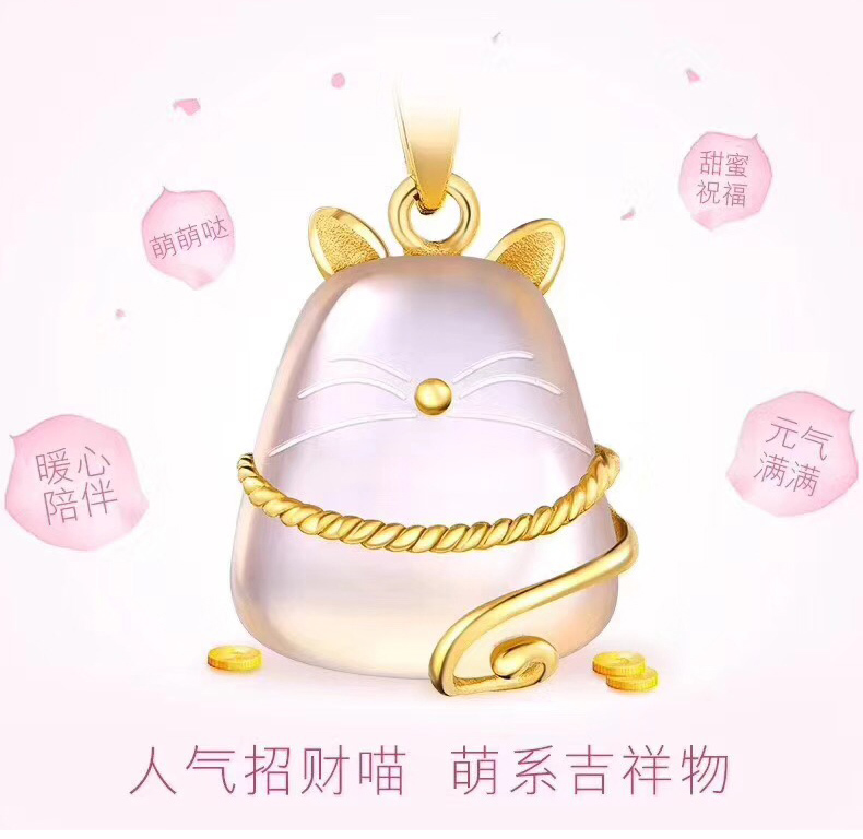 足金镶芙蓉石猫咪吊坠女款项链配18K金O字锁骨链正品颈饰品