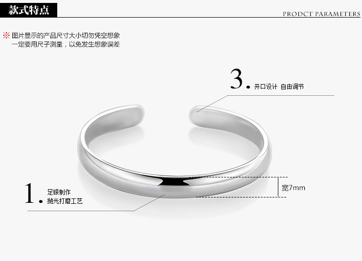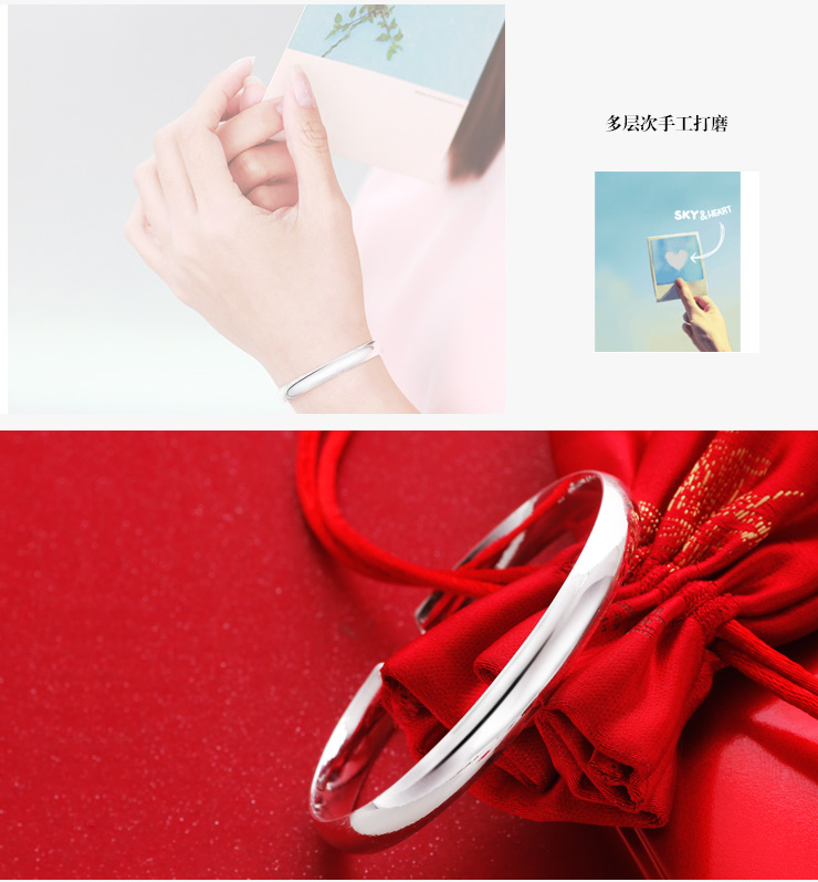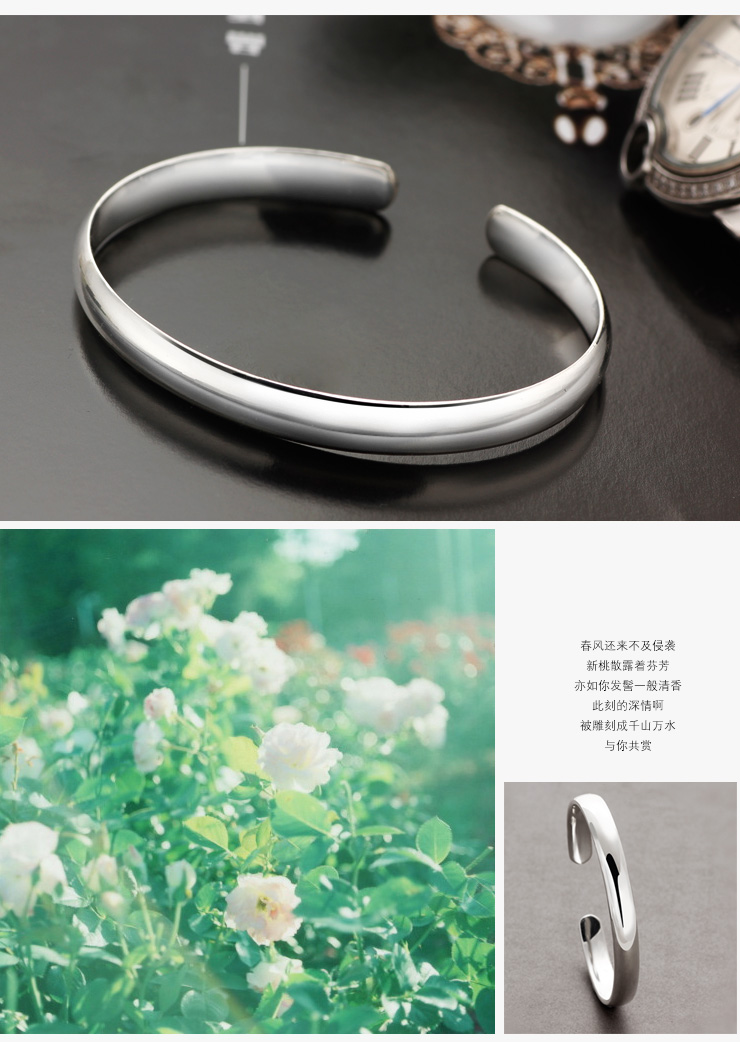 设计点:光面足银手镯 时尚手镯 经典造型大气优雅 足银 抛光 送恋人 送自己 生日礼物 表白礼物 情人节礼物 |