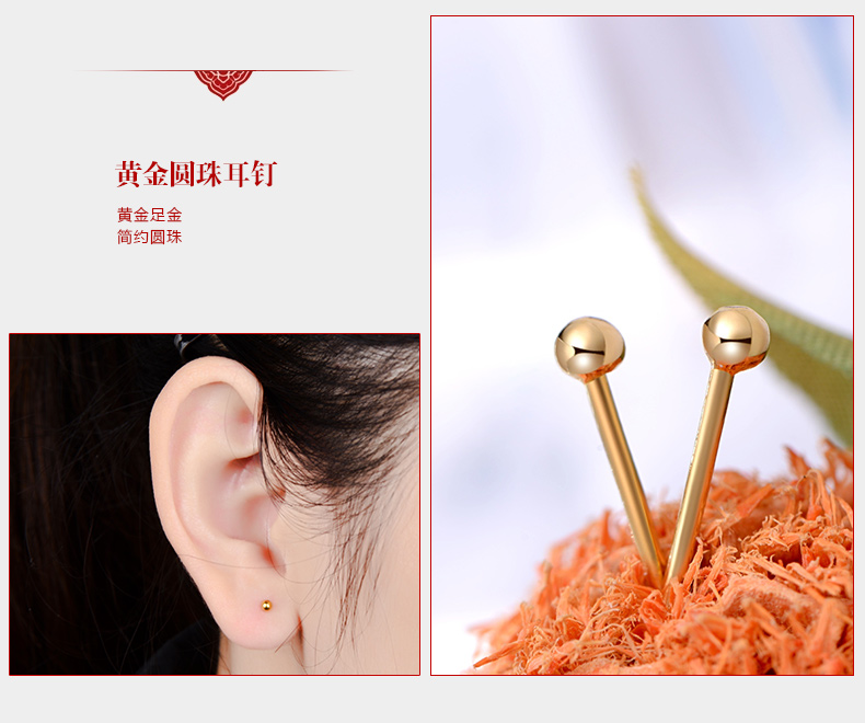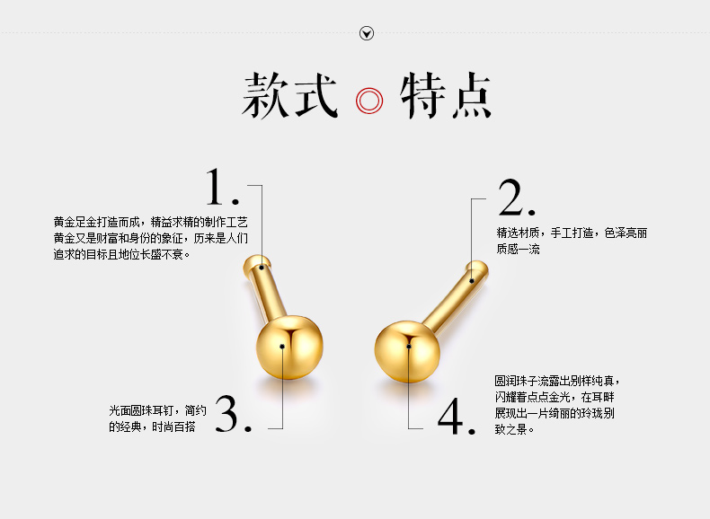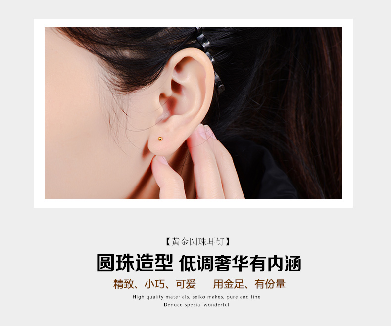 设计点圆珠耳钉经典足金 日常 送爱人 情人