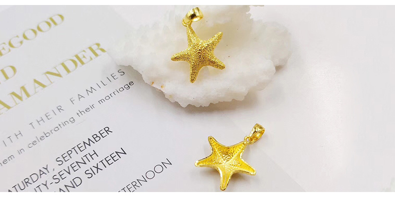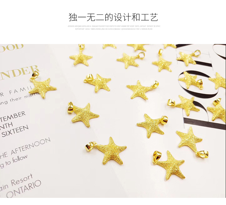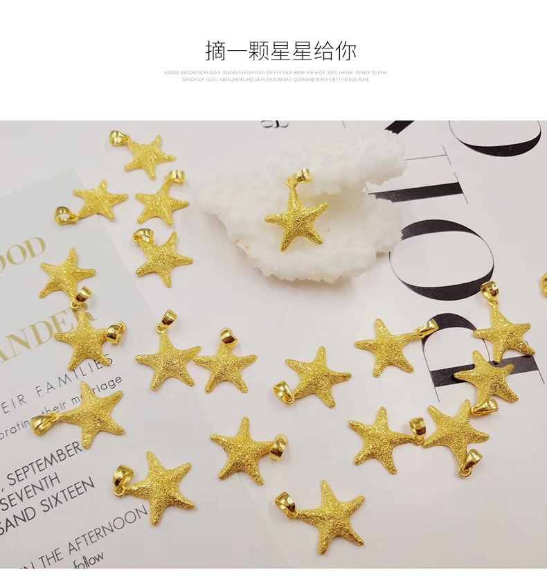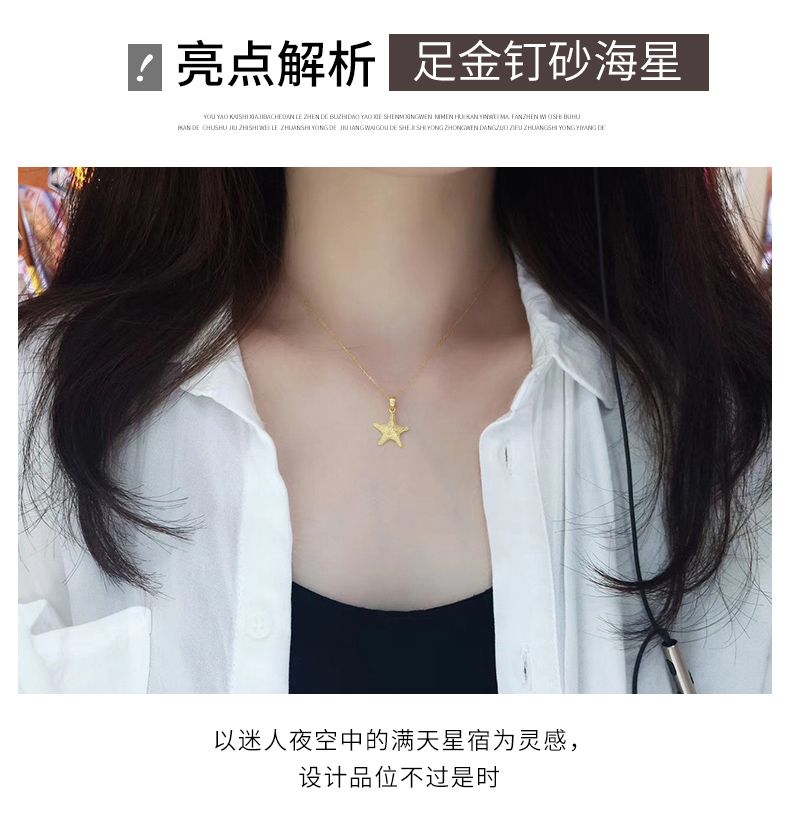 足金吊坠黄金钉砂海星吊坠女黄金项链套链锁骨链颈坠饰品