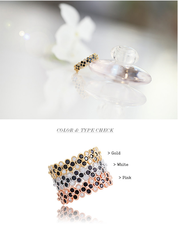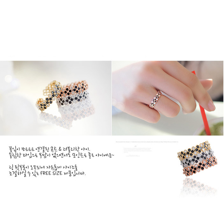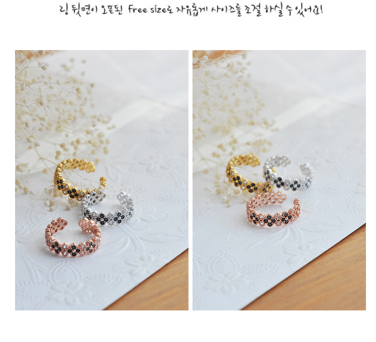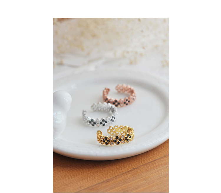 S925银日韩风气质甜美四叶草花环开口戒指食指配饰指环