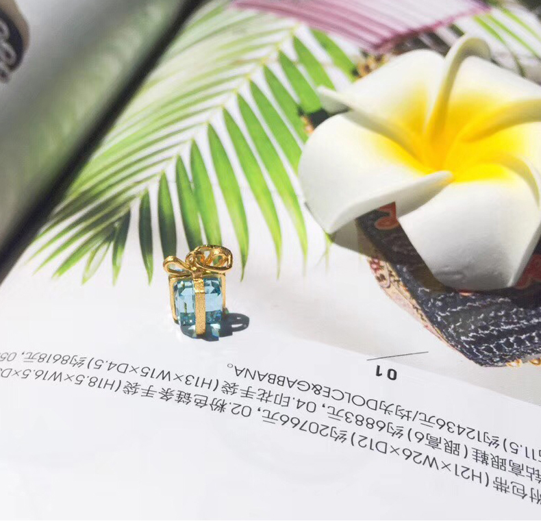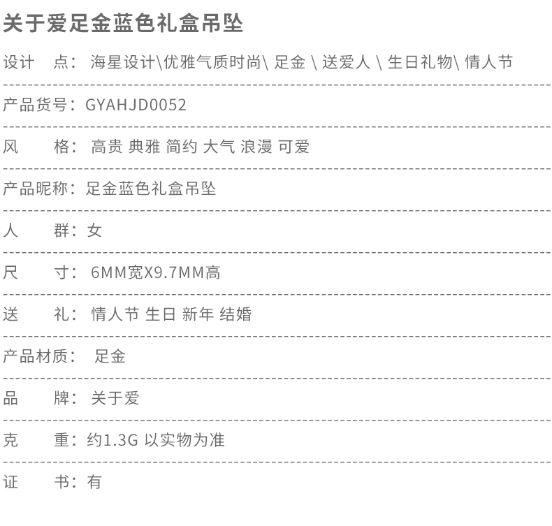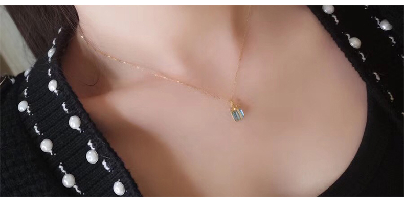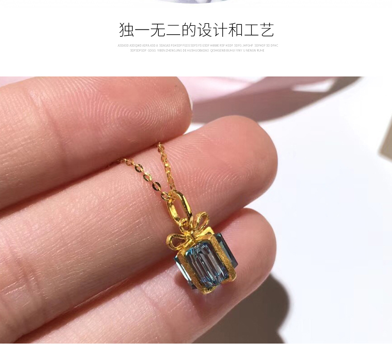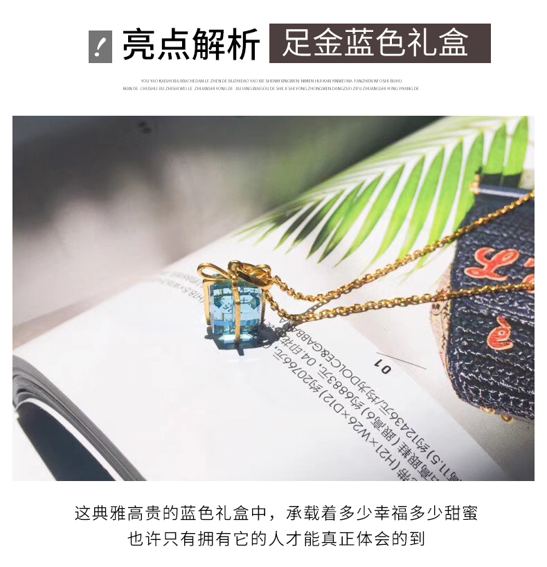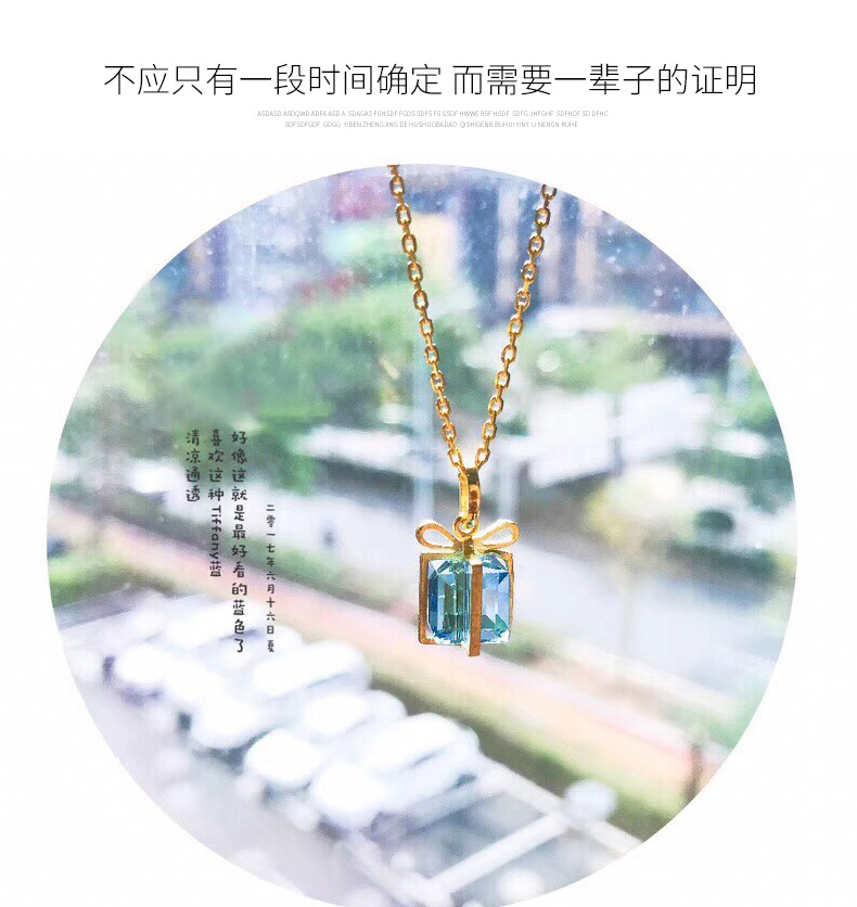 黄金项链女999足金吊坠蓝色礼盒镶嵌人工合成水晶吊坠锁骨链细链