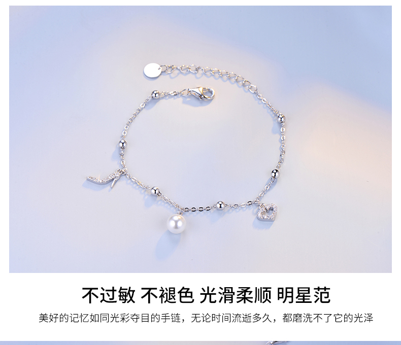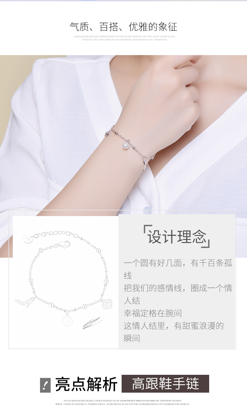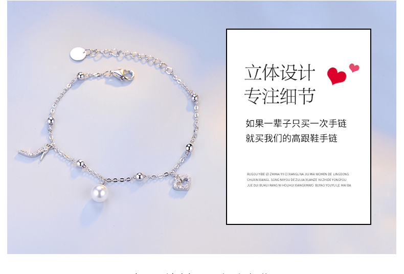 手链女925银韩版小爱心高跟鞋简约学生个性森系闺蜜饰品送女友