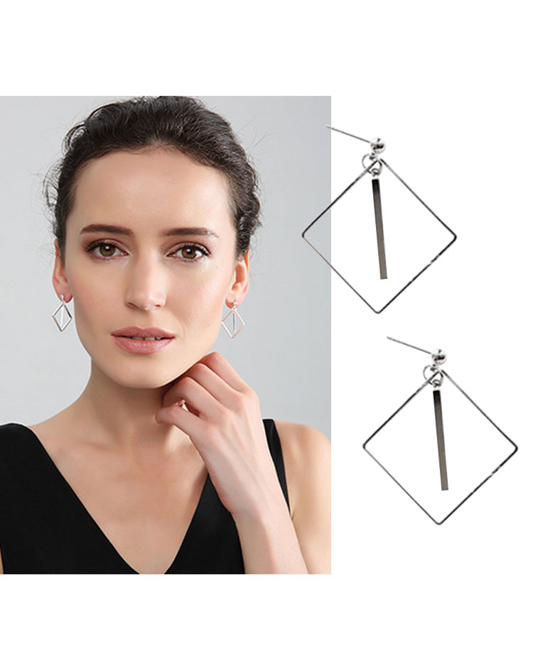 关于爱几何个性四边形长条耳钉气质女日韩国简约时尚正方形耳环
