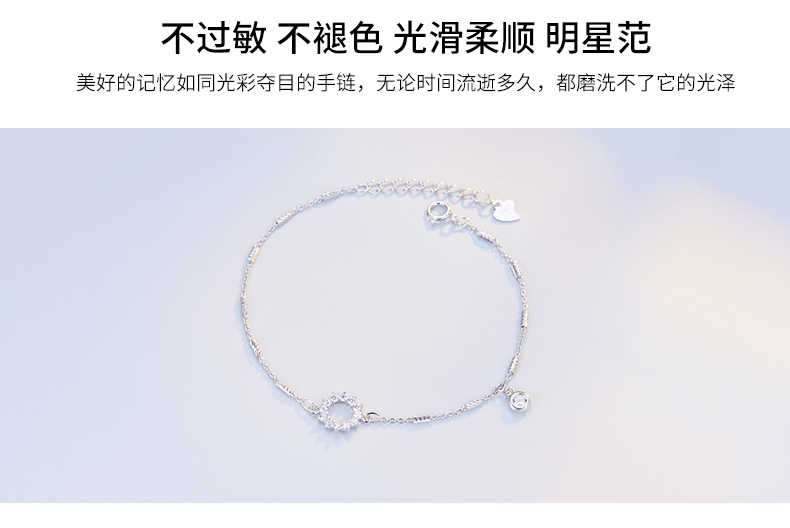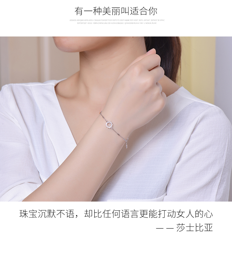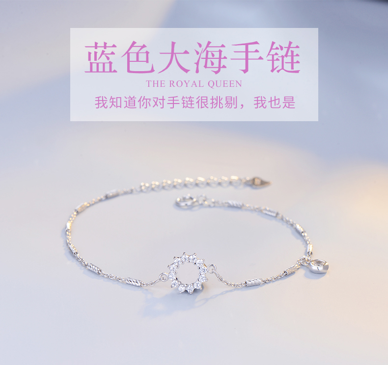手链女925纯银韩版圆圈时尚潮人简约个性学生森系闺蜜饰品送女友