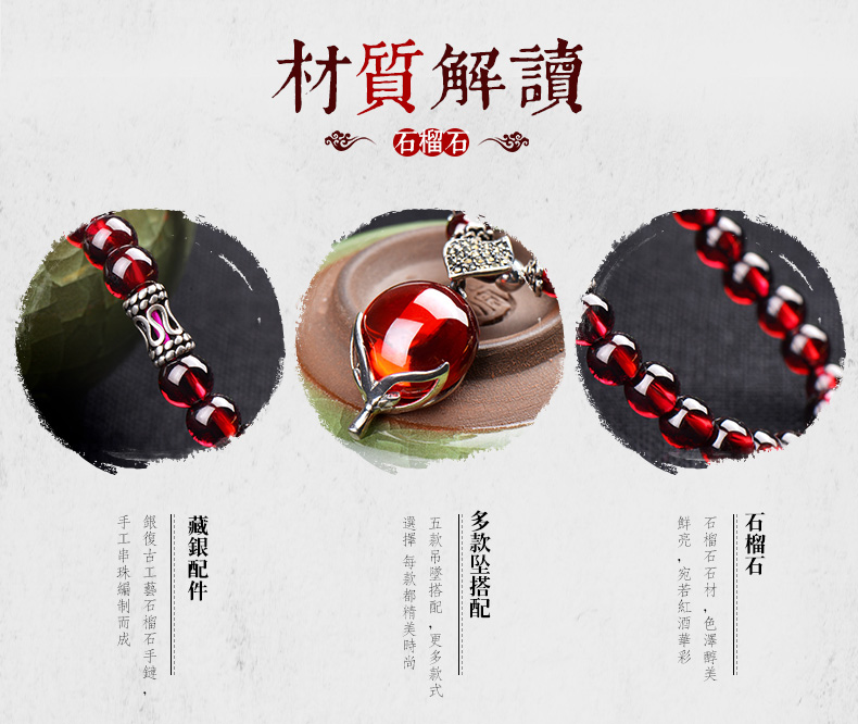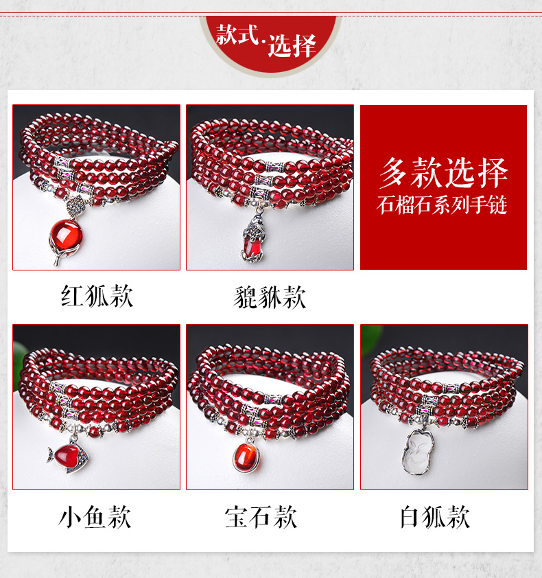 产品昵称:石榴石晶石系列手链 | 人群: 女士 |