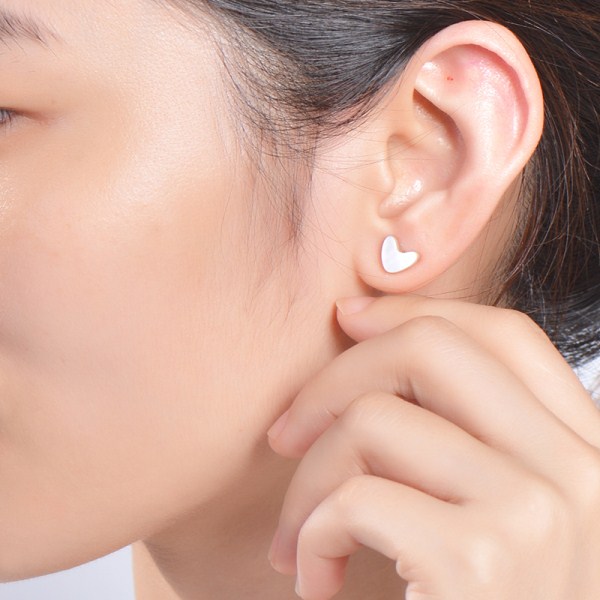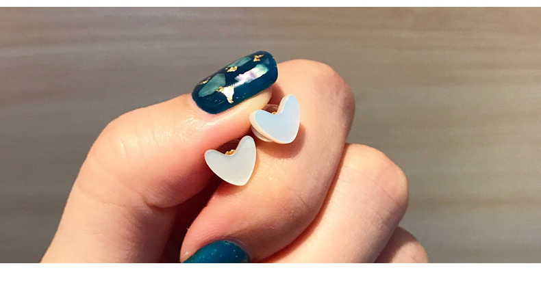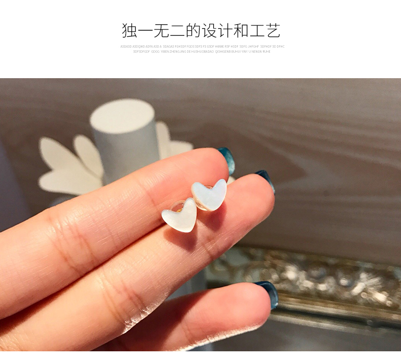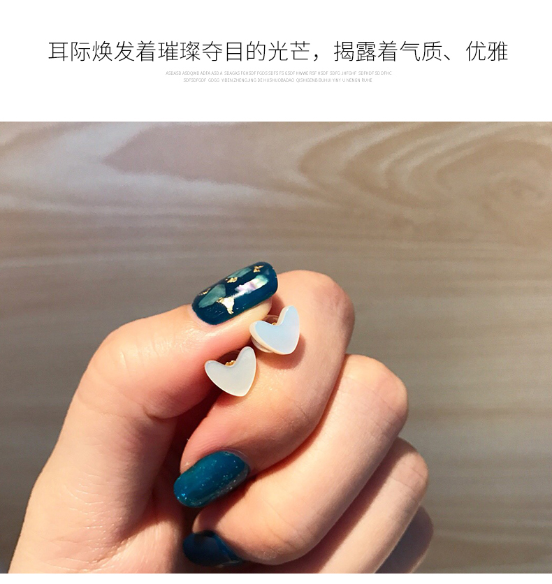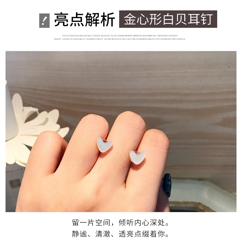 18K金耳钉女款心形白贝母耳骨钉爱心耳饰新款日韩简约气质正品