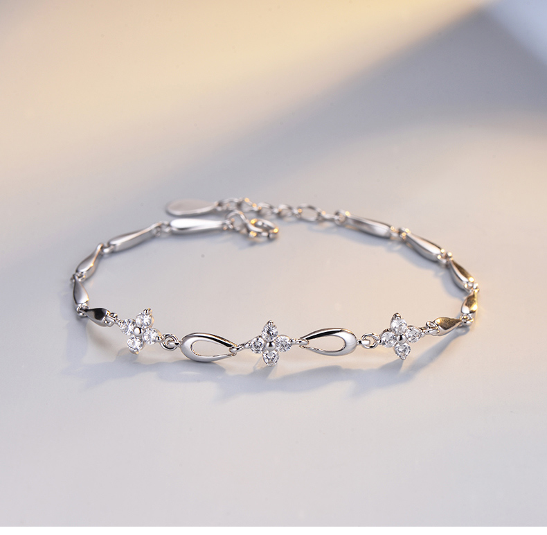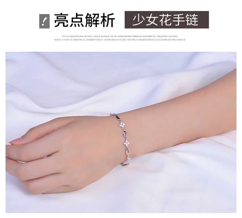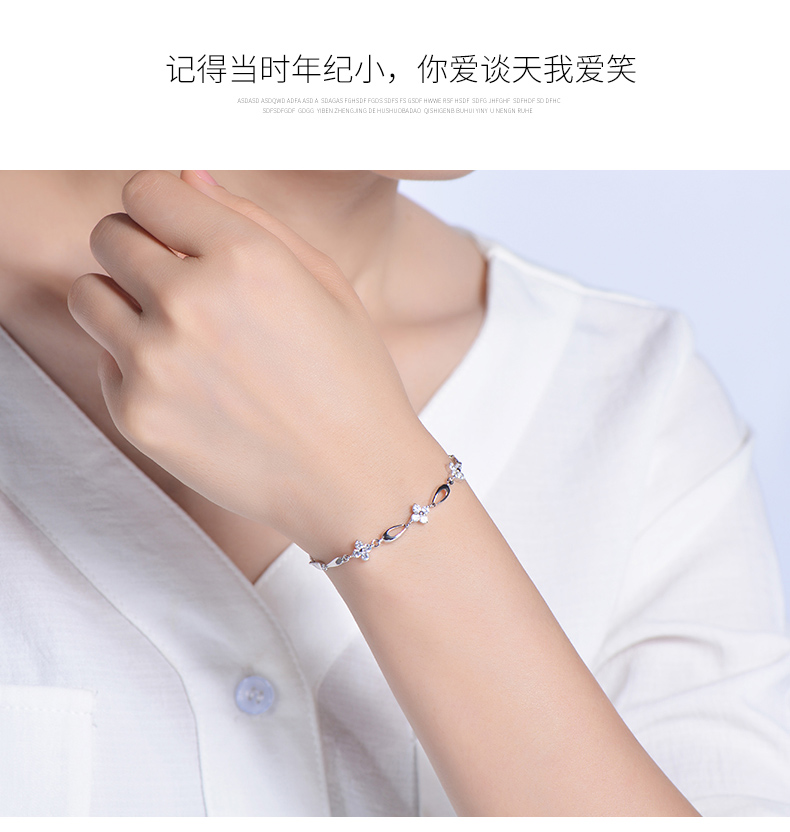 925银手链女新款韩版简约个性时尚手串四叶草手链学生手饰正品