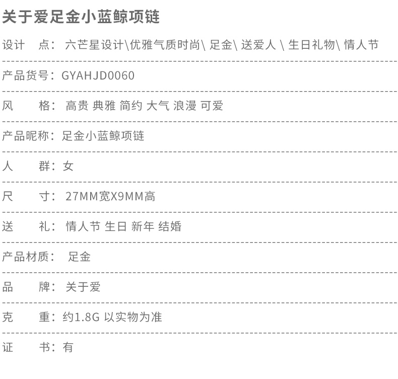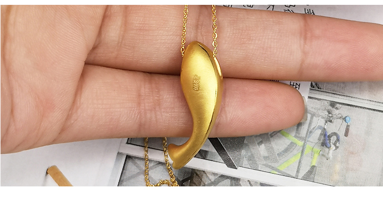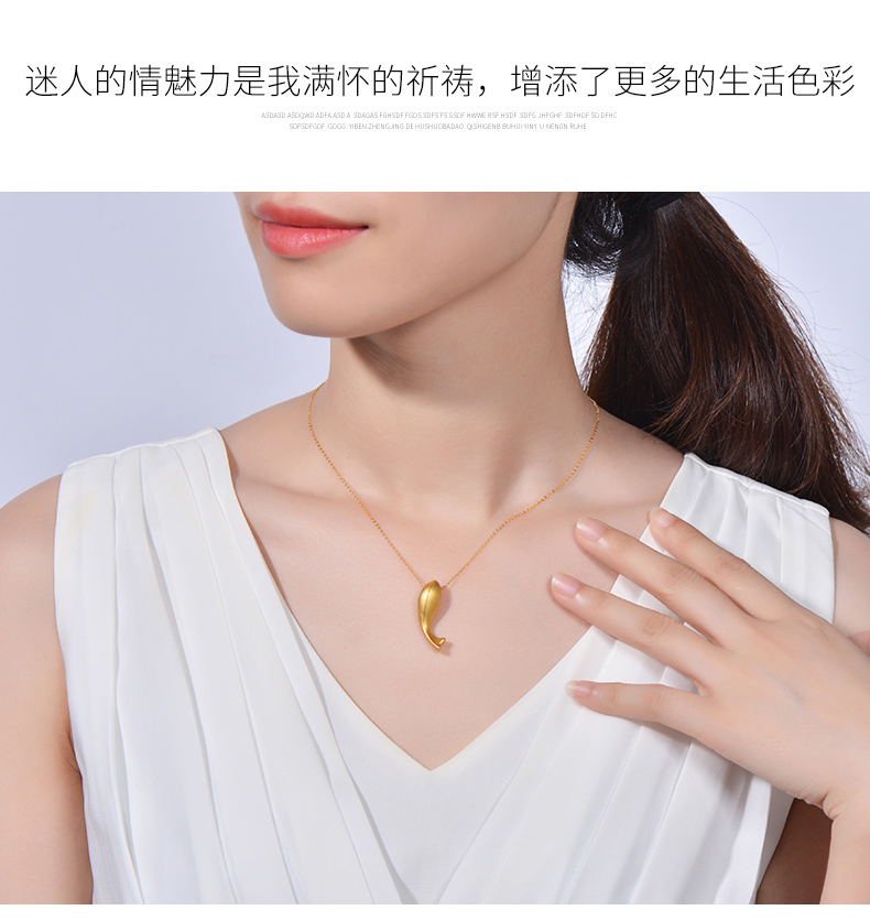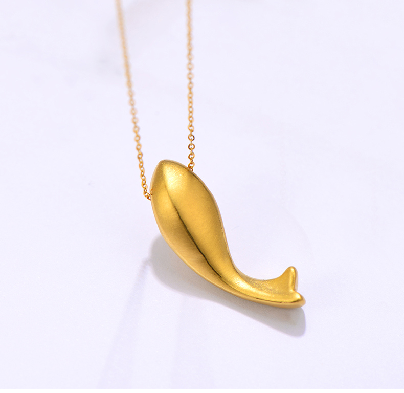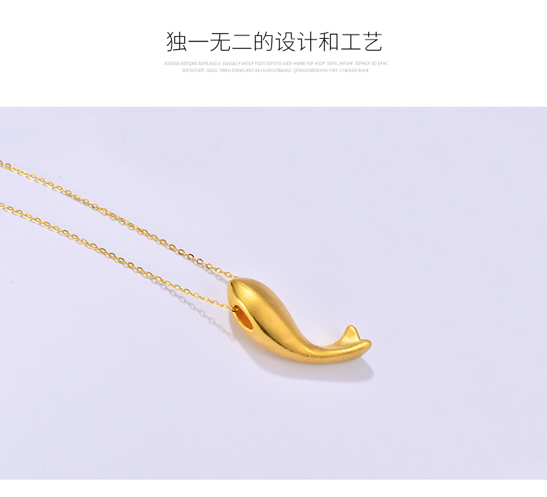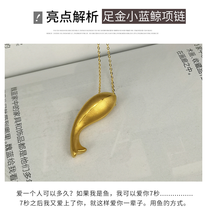 黄金吊坠新款足金挂坠999黄金磨砂小蓝鲸吊坠18K金项链女细链正品