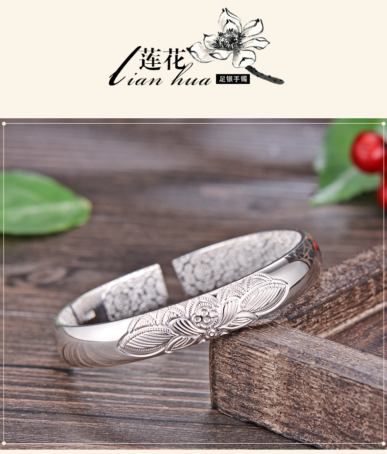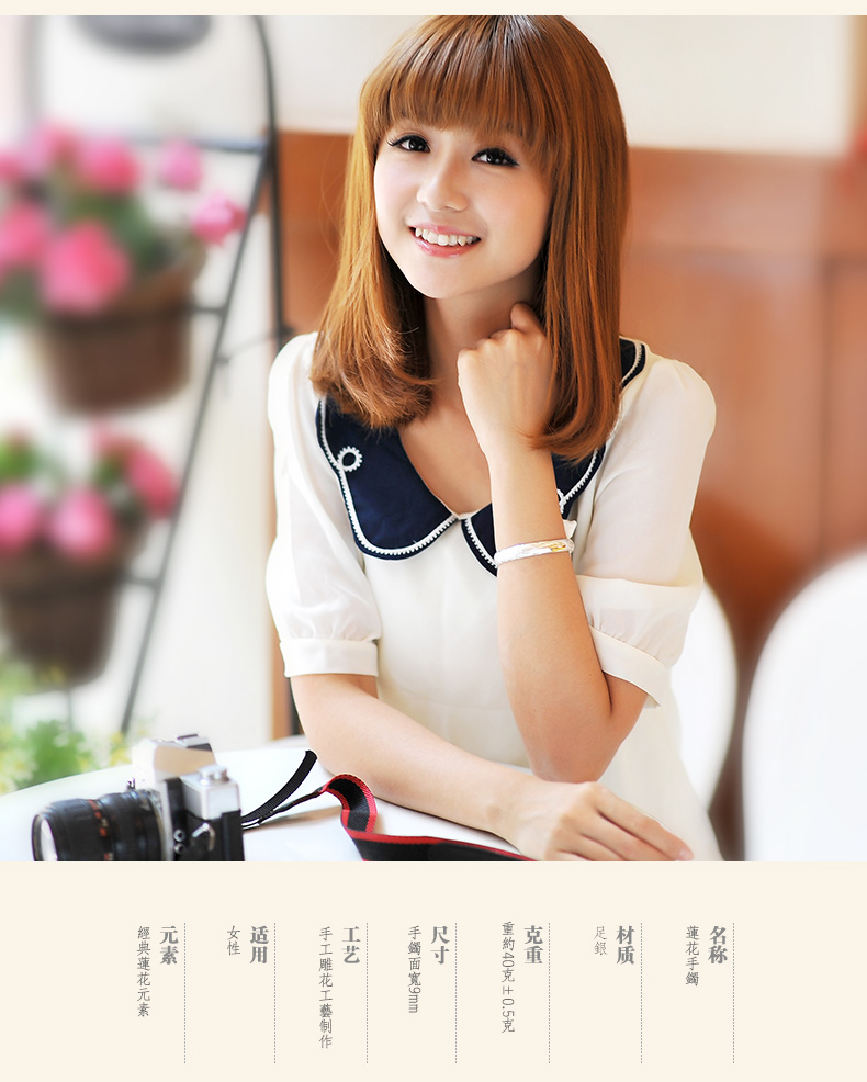 关于爱 足银 莲花 手镯 经典莲花图案 时尚个性 | |