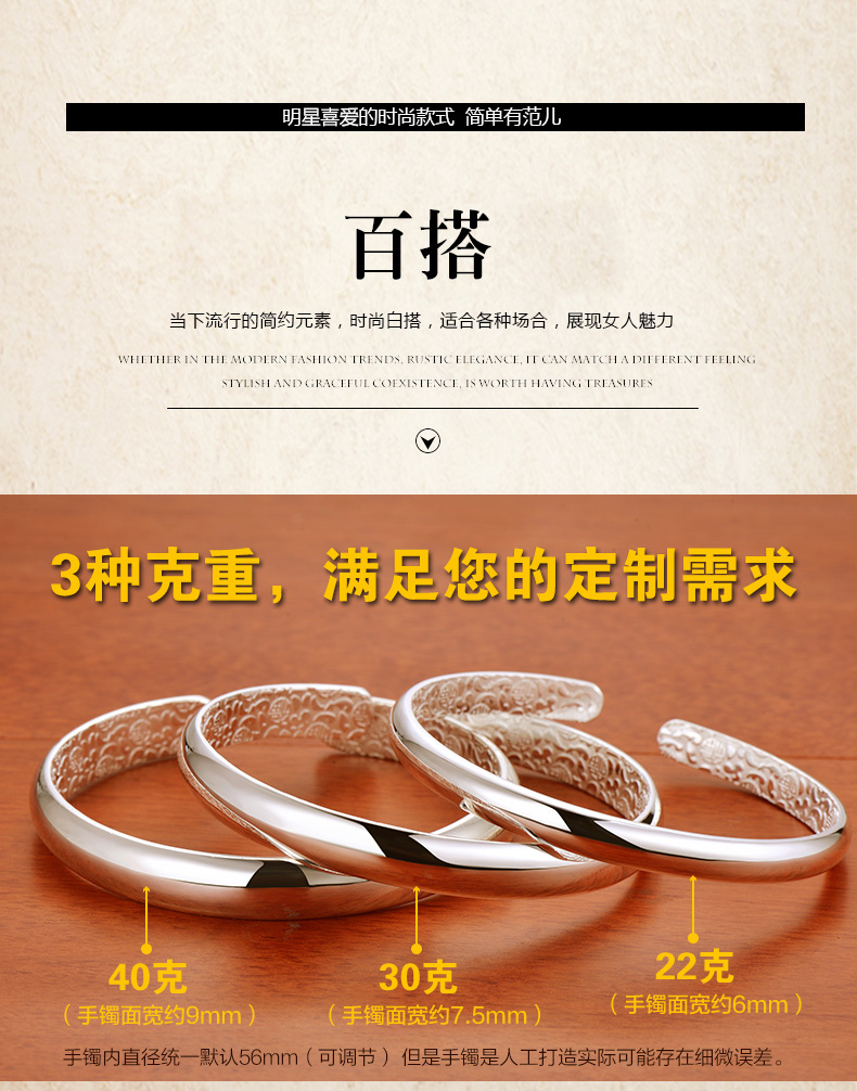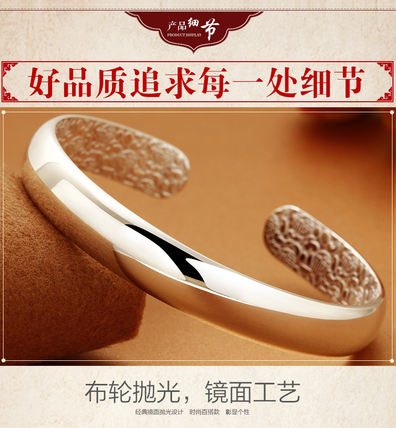 设计点:经典光面 时尚手镯足银 抛光 送恋人 送自己 生日礼物 表白礼物 情人节礼物 |