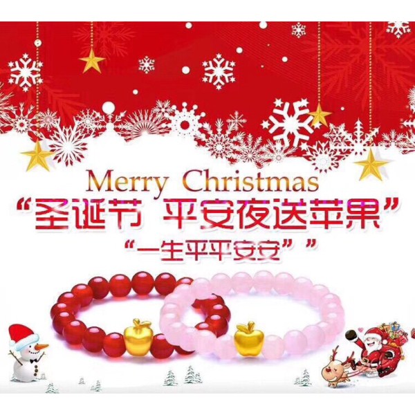圣诞节平安夜礼物 999足金3D硬金苹果黄金手链女款搭配红玛瑙水晶