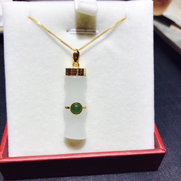 节节高选用you质和田白玉镶嵌 碧绿中间一点缀