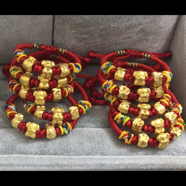 黄金生肖狗狗吊坠转运珠手链婴儿童红绳手链宝宝3d硬金饰手镯