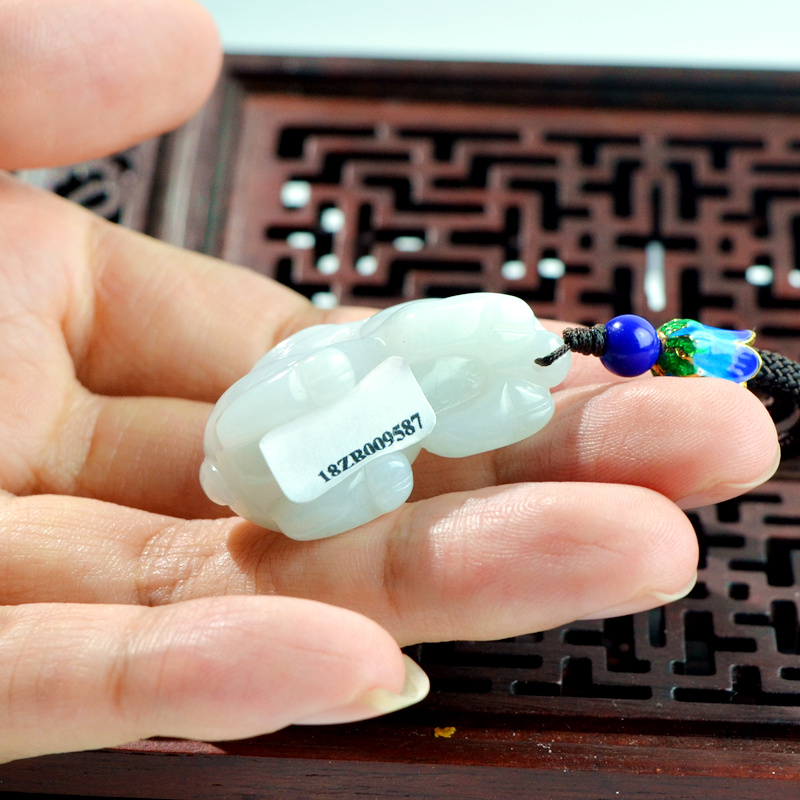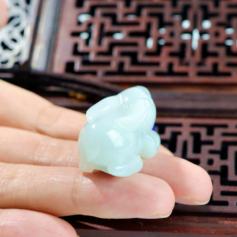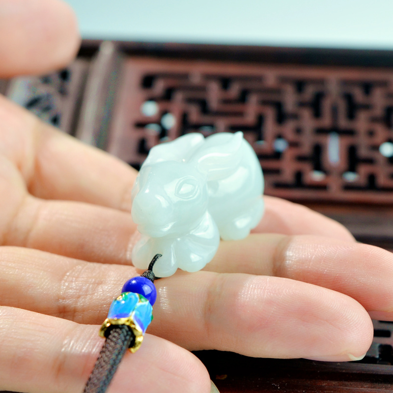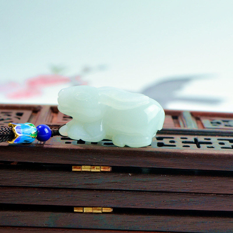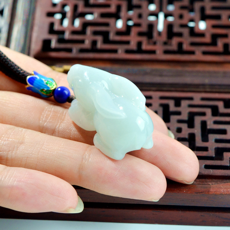 正品天然翡翠十二生肖吊坠兔子 手工立体雕刻 男女款属相项链玉坠