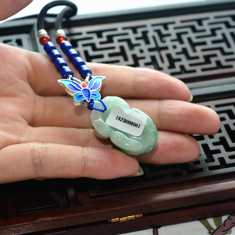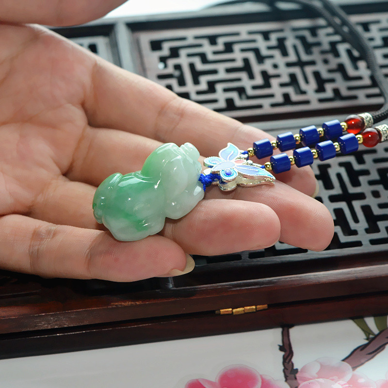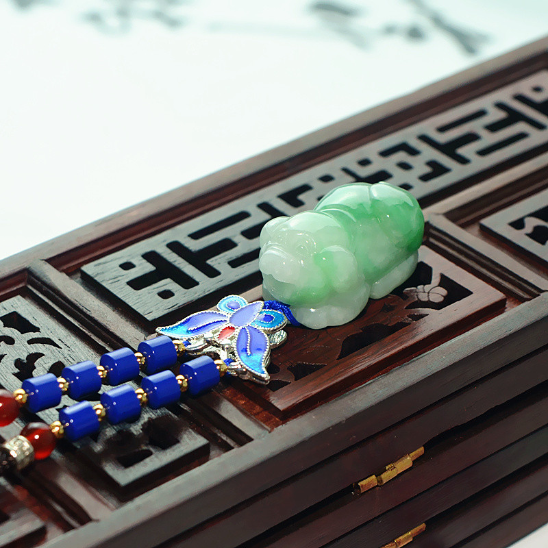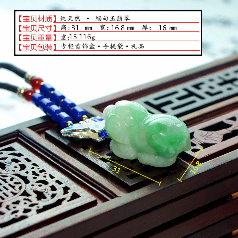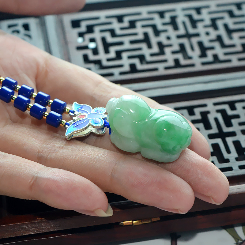 飘花带绿翡翠吊坠生肖玉猪挂件立体玉石玉坠男女款项链民族风挂坠