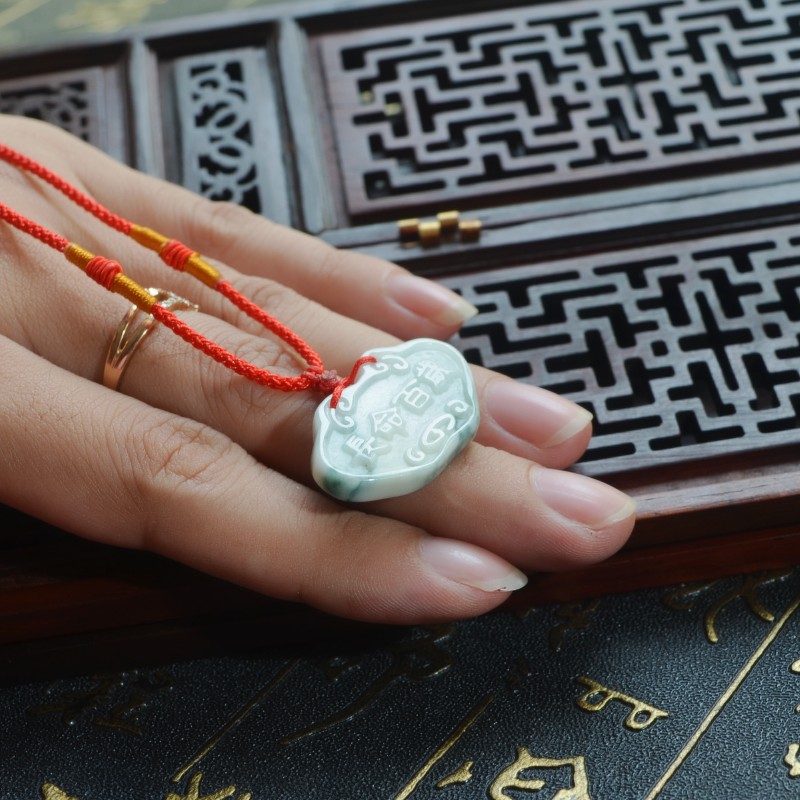 天然翡翠宝宝长命锁吊坠长命百岁长生锁玉坠儿童男女款玉锁保平安