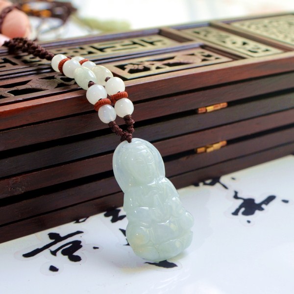正品缅甸玉石翡翠观音吊坠项链天然A货玉观音挂件男款玉佩证书