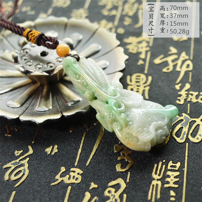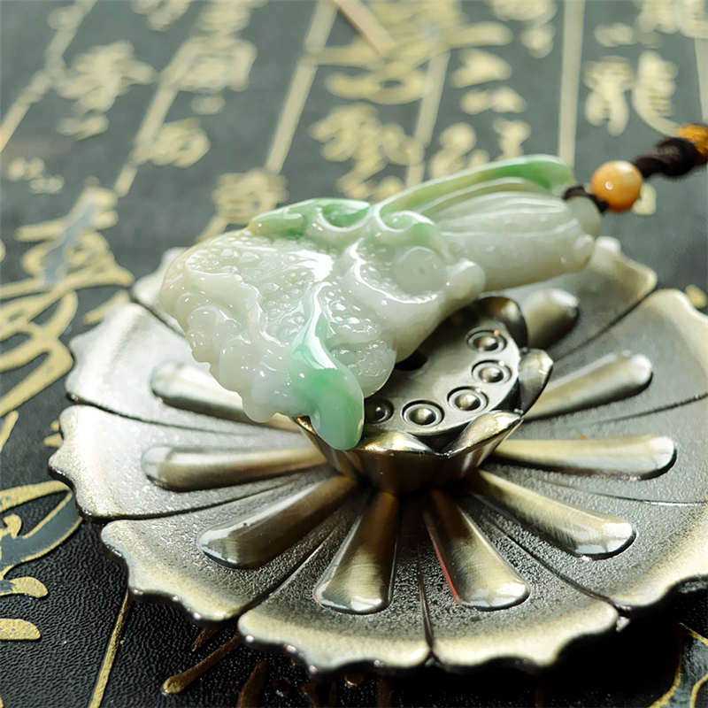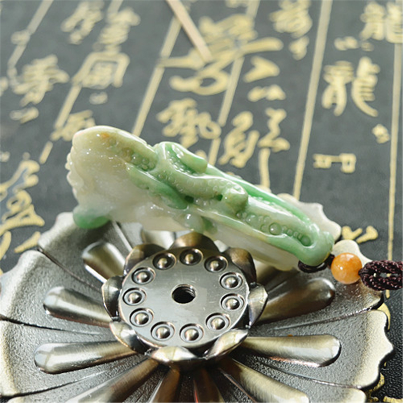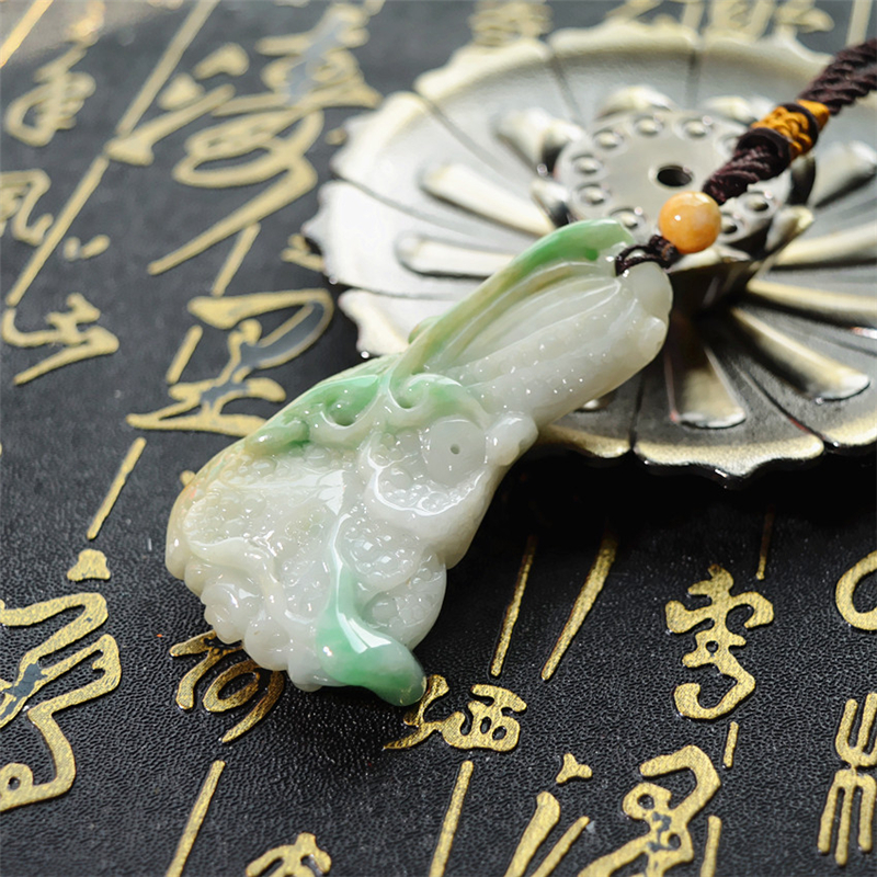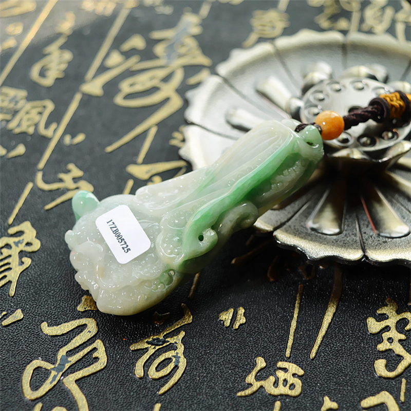 天然双色翡翠白菜吊坠玉白菜挂件如意招财百财聚来手把件可当吊坠