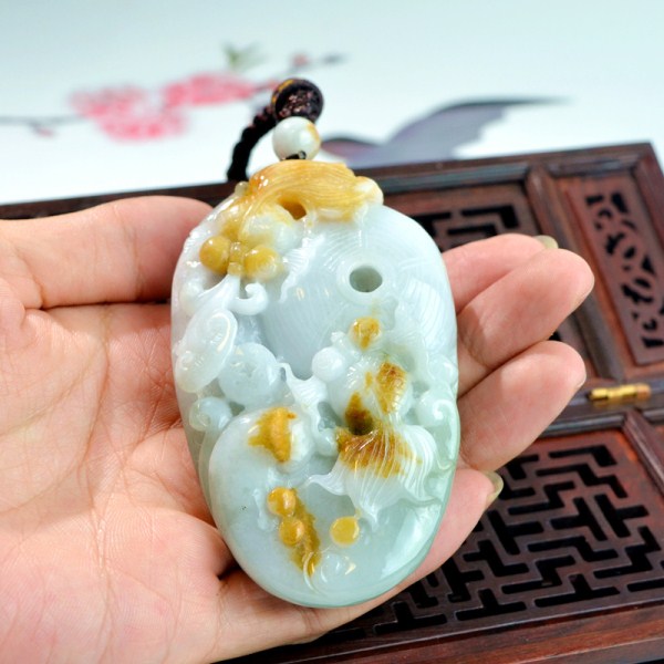 正品天然缅甸玉翡翠金鱼手把件 美满如意 吉祥幸福金玉满堂如意