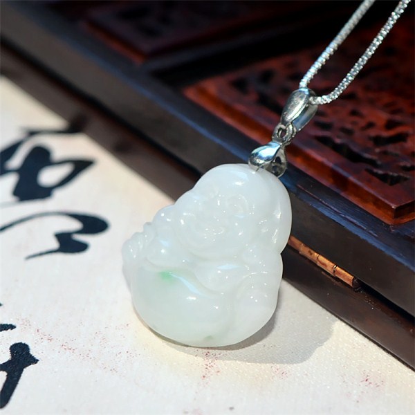 翡翠玉佛吊坠女款佛公浅绿糯白弥勒佛挂坠缅甸玉石坠子本命年礼物