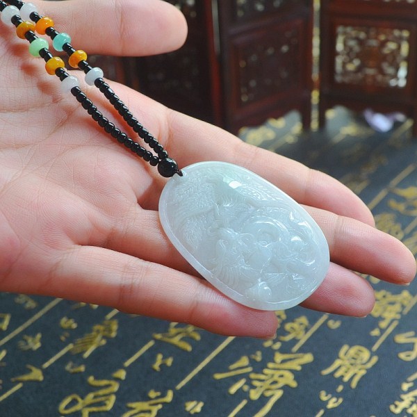 缅甸翡翠A货龙凤玉佩天然玉石吊坠圆牌情侣挂件项链男女正品证书