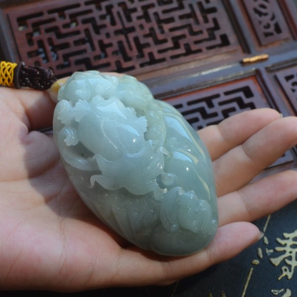 翡翠福在眼前手把件天然A货老坑种精雕玉手玩件金玉满堂富贵有余
