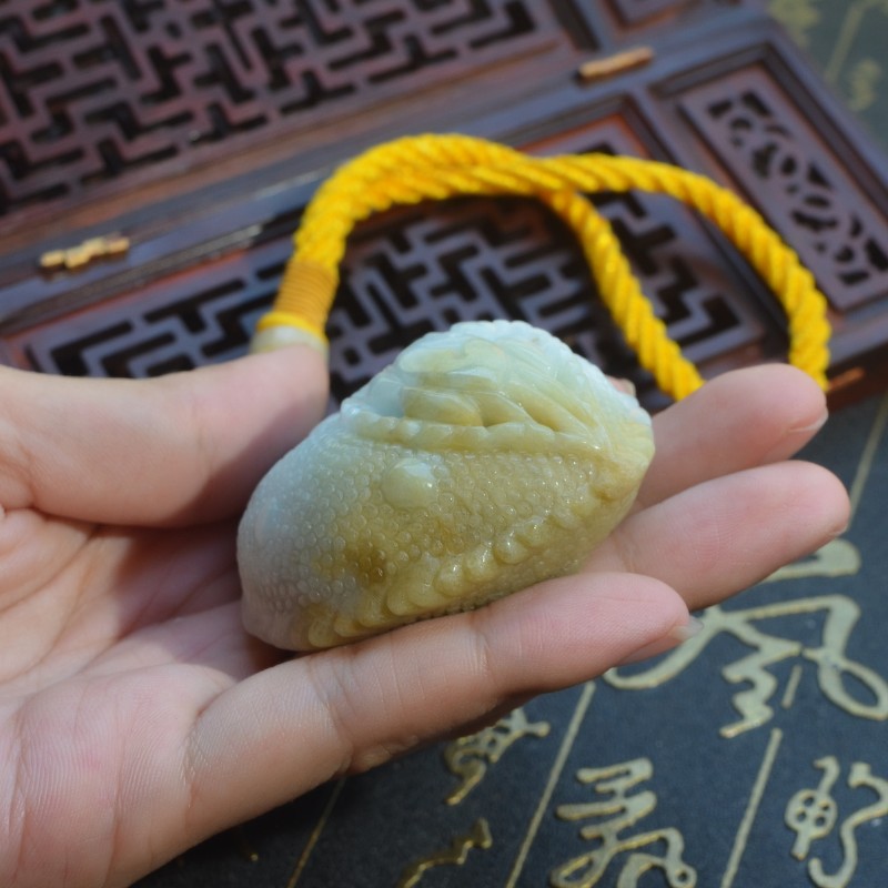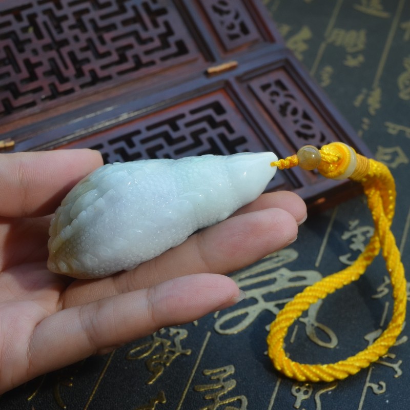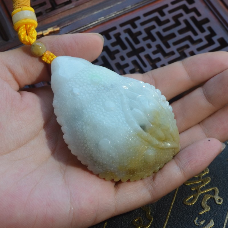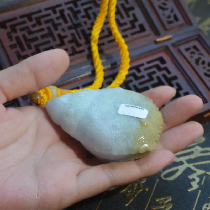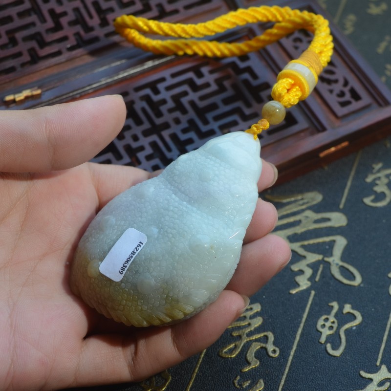缅甸天然翡翠A货玉米手玩件精雕多子多福黄加绿八方来财手把件