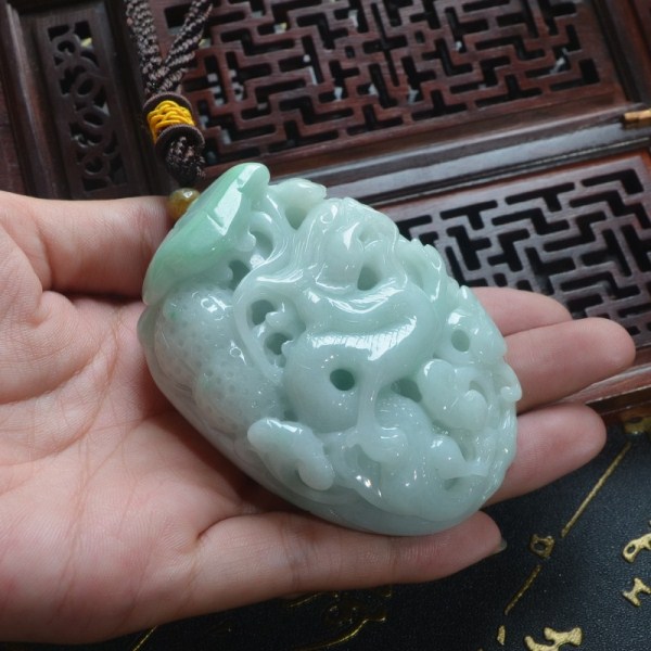 缅甸天然a货翡翠龙手把件生意兴隆手玩件花生玉石如意把玩件